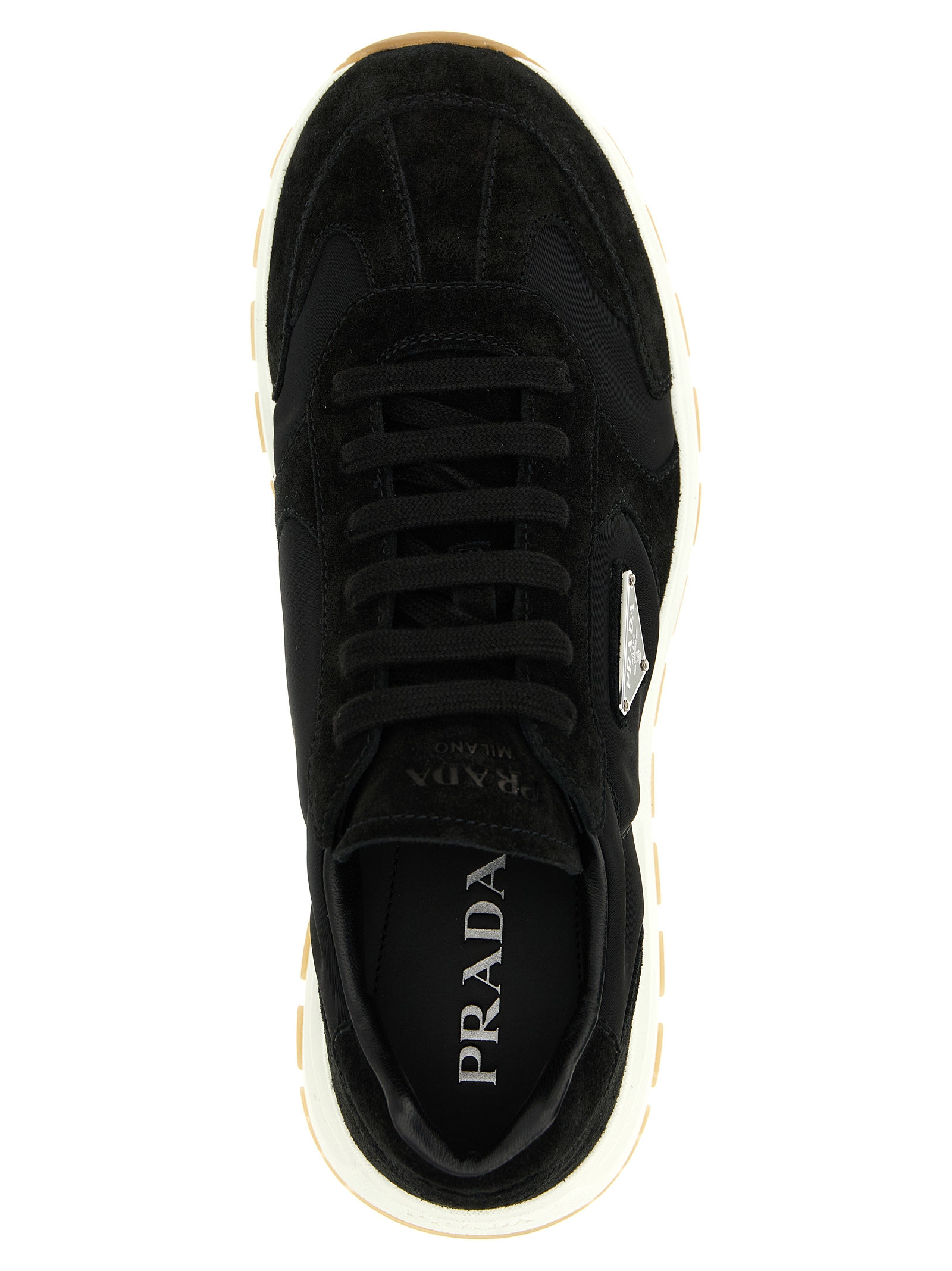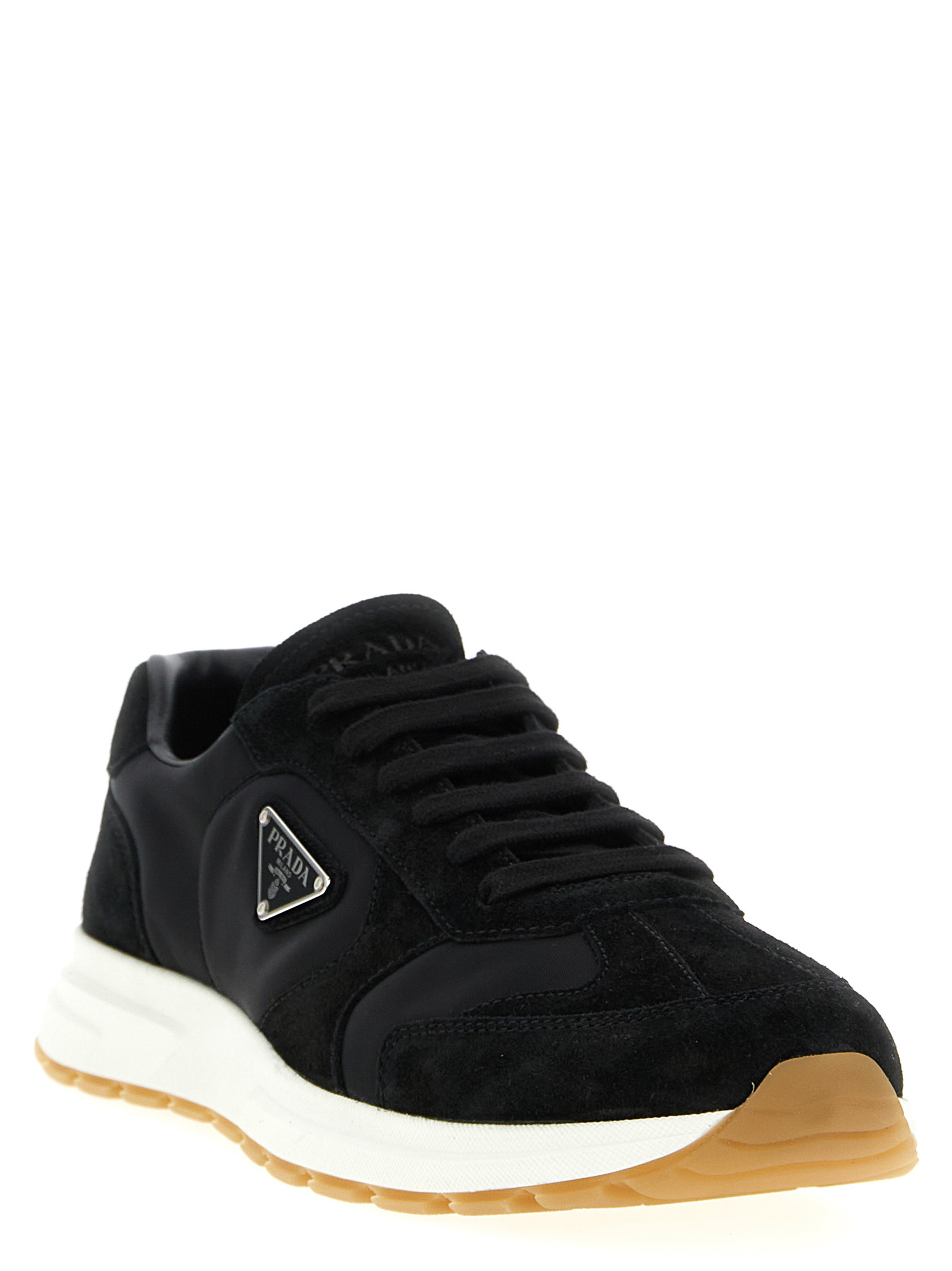 ‘Prax 2.0’ sneakers in Re-Nylon and suede, triangle logo in enameled metal on the side, lace-up closure, rubber sole.