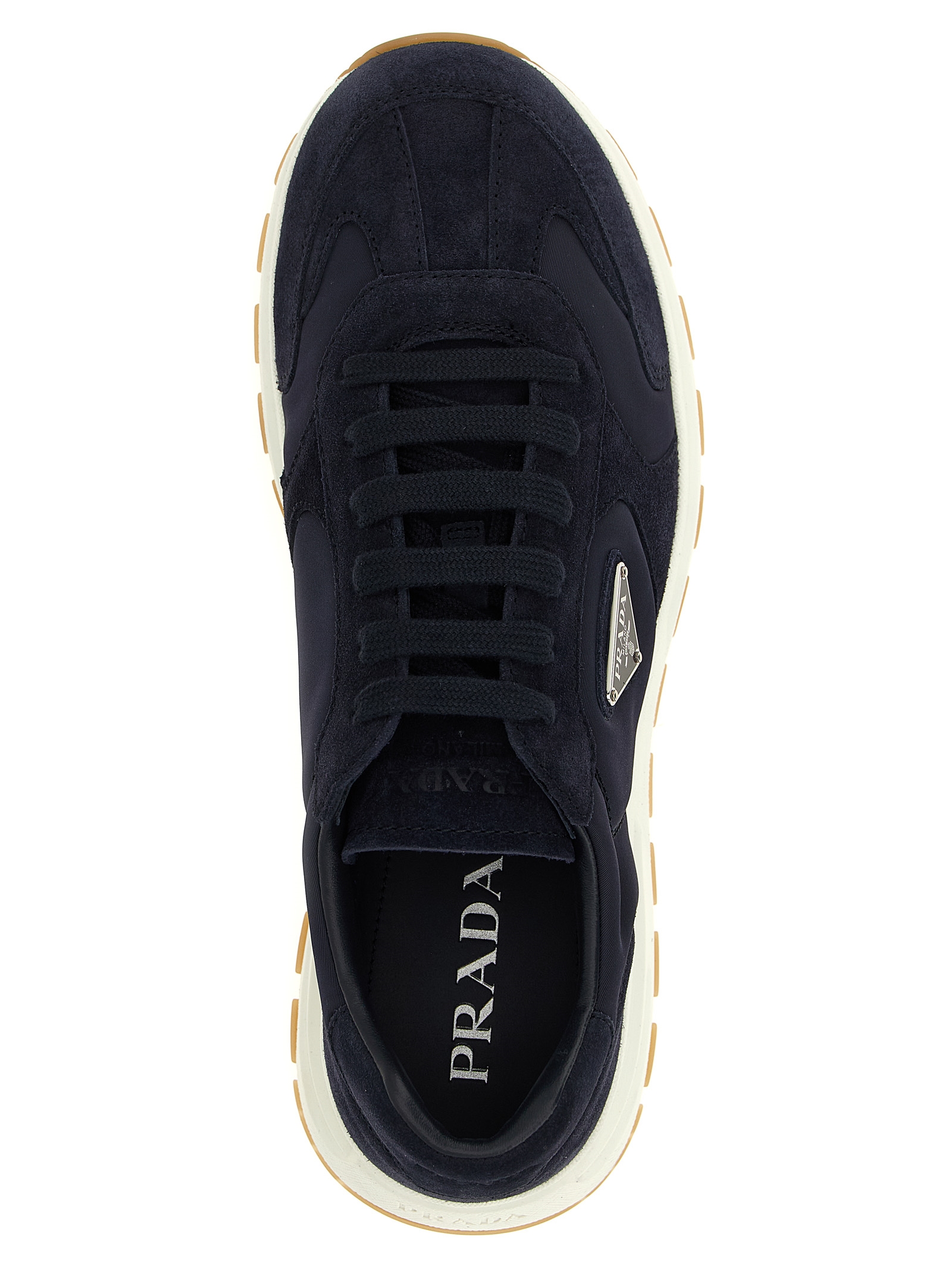 ‘Prax 2.0’ sneakers in Re-Nylon and suede, triangle logo in enameled metal on the side, lace-up closure, rubber sole.