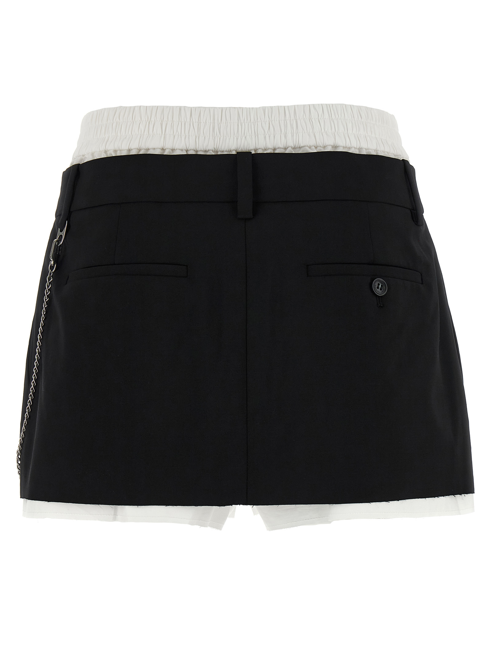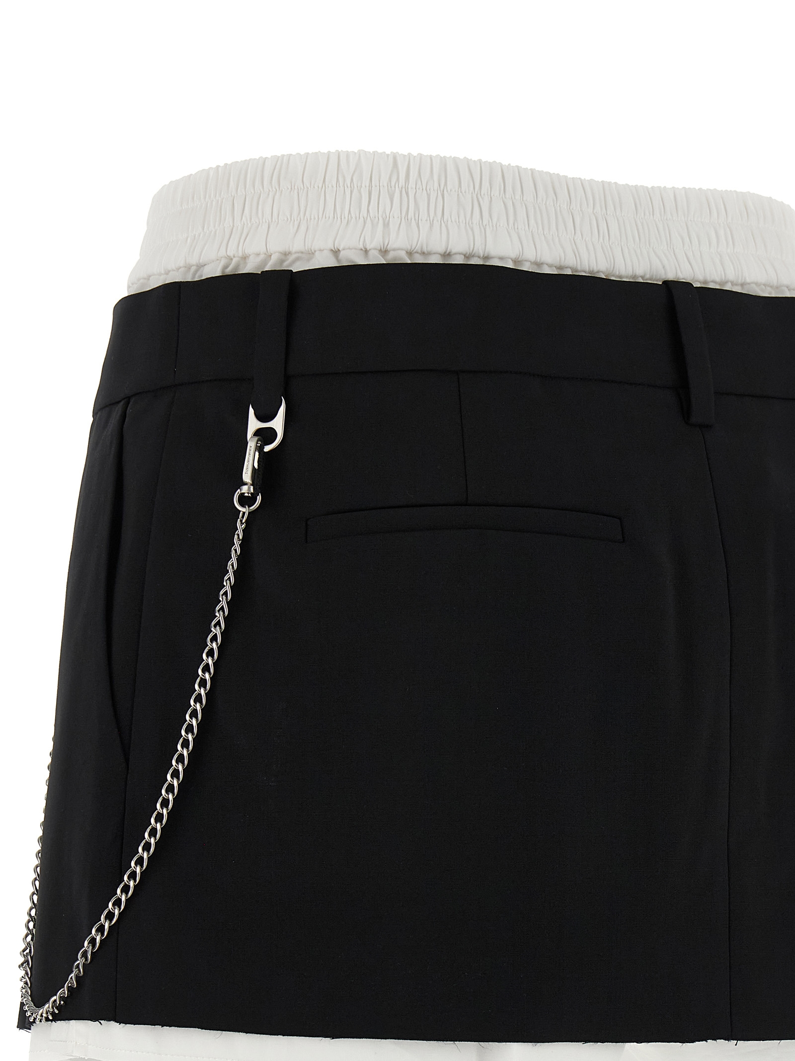 ‘Pre-Styled Pleated W/Chain’ cotton skort with elastic with logo patch at the waist, flap with buttons and mini pleated skirt in overlapping wool, zip hook and button closure on the front, pockets, chain with removable charm.