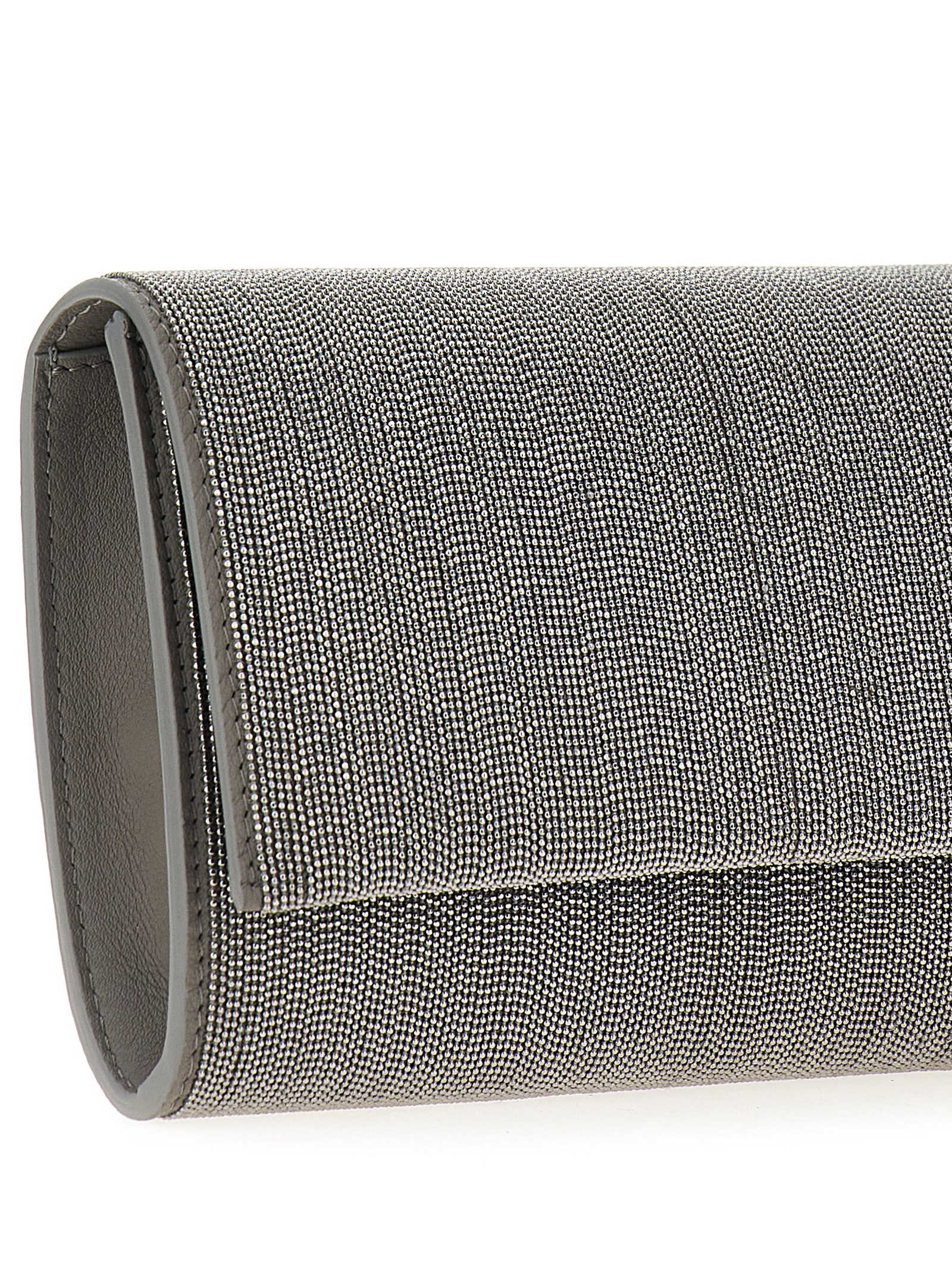‘Precious’ leather clutch bag with all-over Monile decoration and magnetic closure.