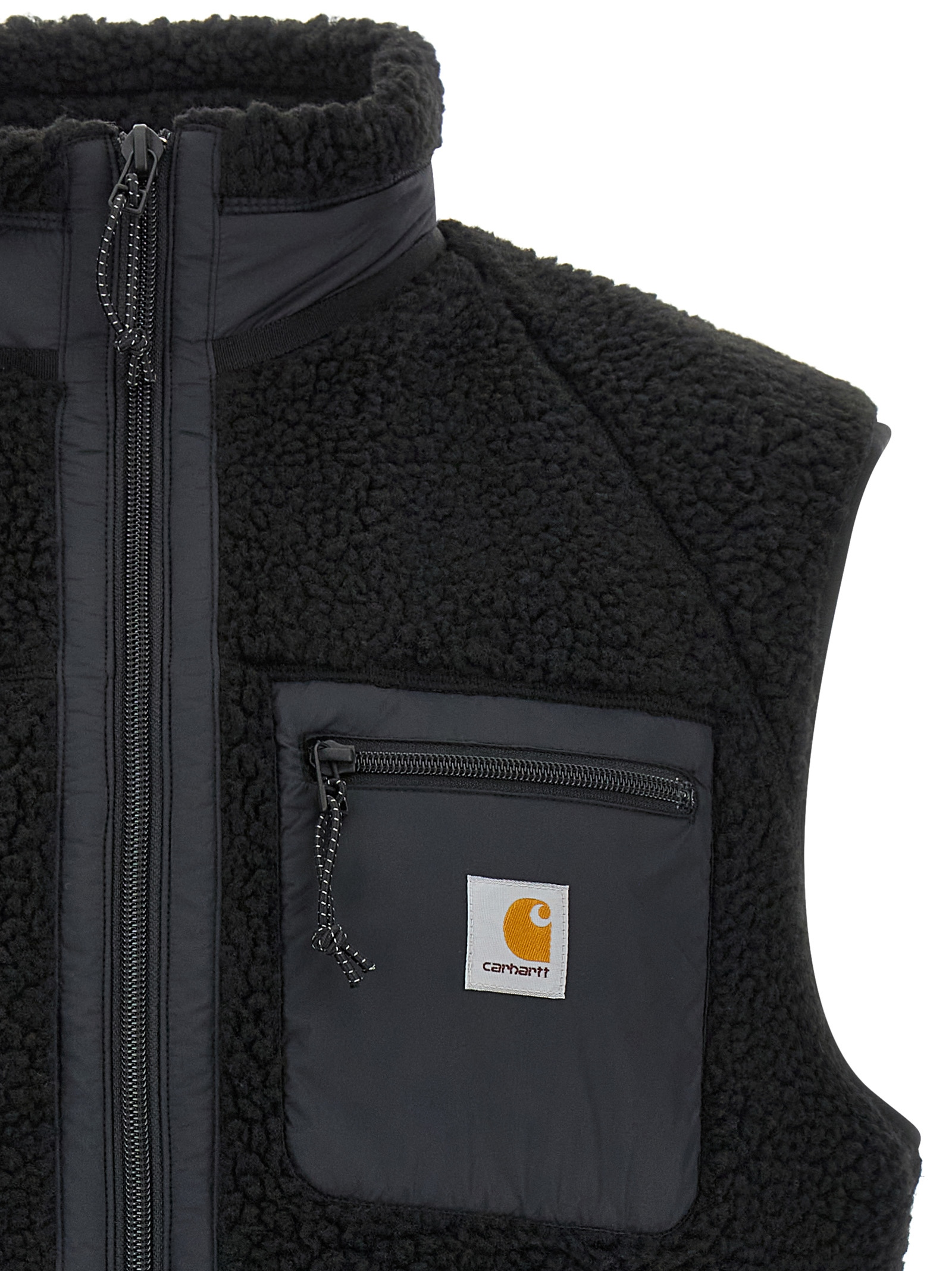 ‘Prentis’ vest in heavy polyester fleece with nylon taffeta panels, mesh lining, logo patch and front zip closure, high neck, pockets.