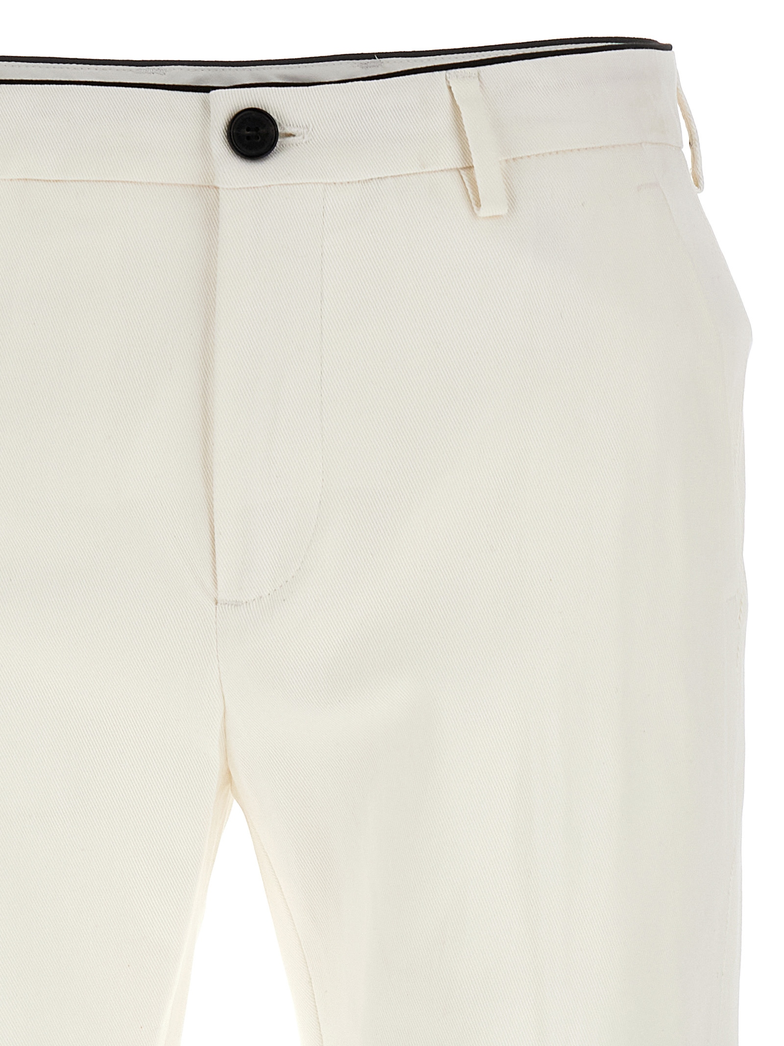 Prince’ natural rag-dyed cotton pants with contrast piping at the waist, straight leg with central crease, zip and button closure, pockets.