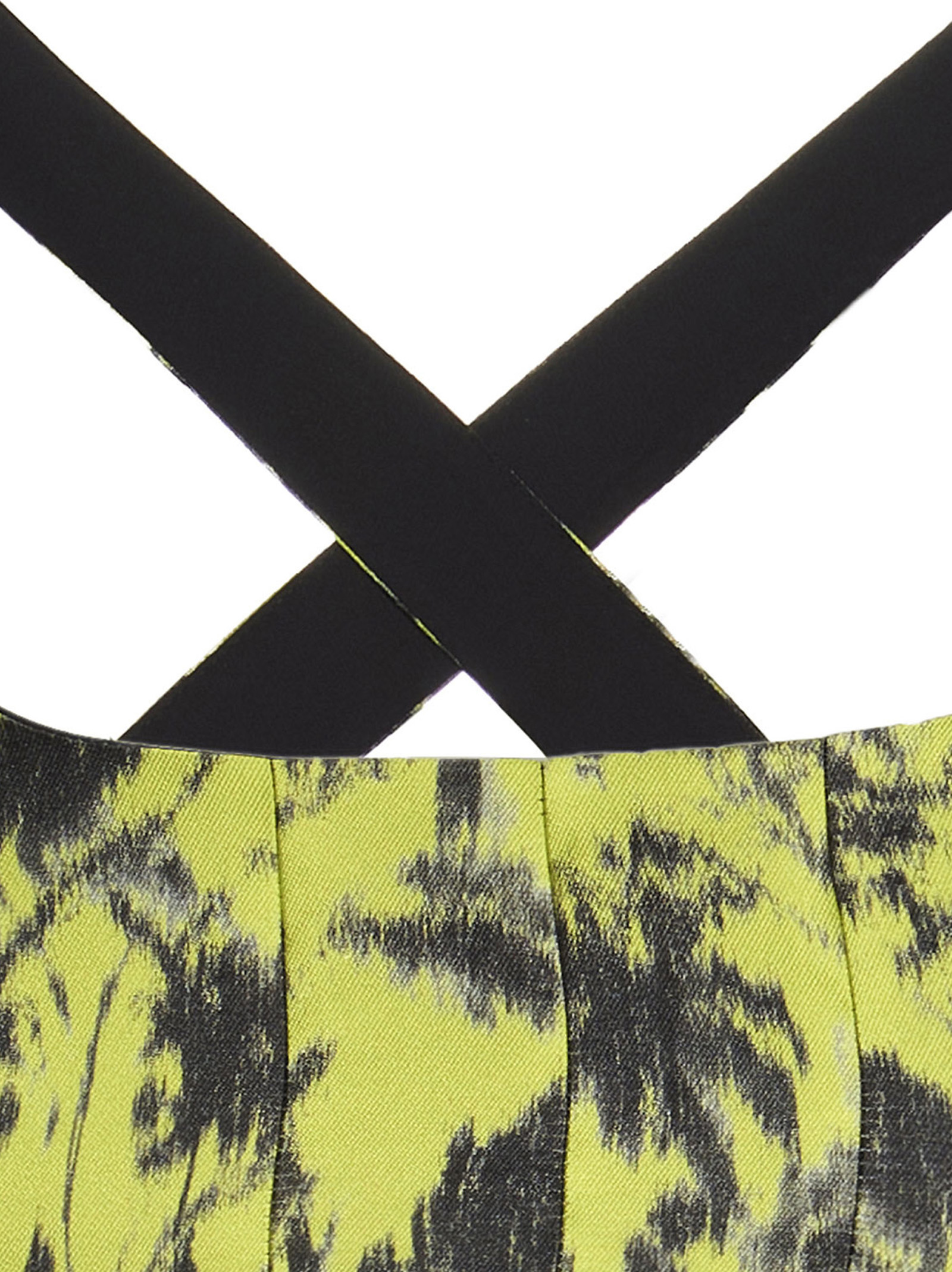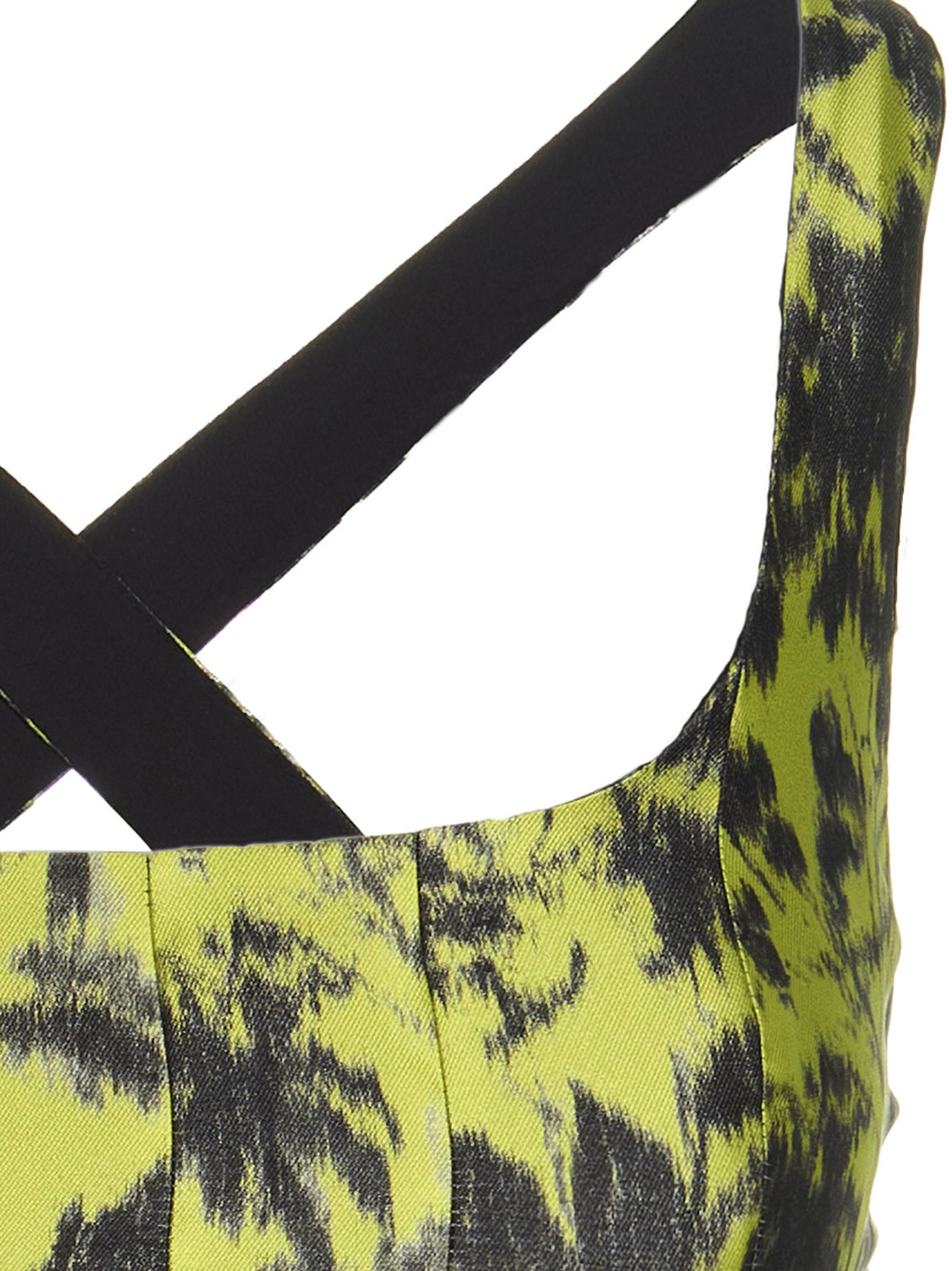 Cropped top with an all-over print, crossed shoulder straps at the back and a hook closure.