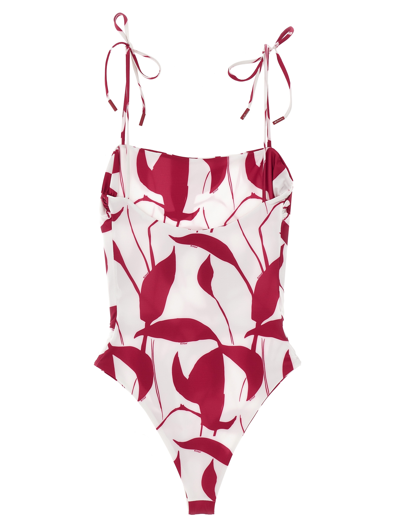One-piece swimsuit crafted in a stretch fabric with all-over print, lacing, neck and back.