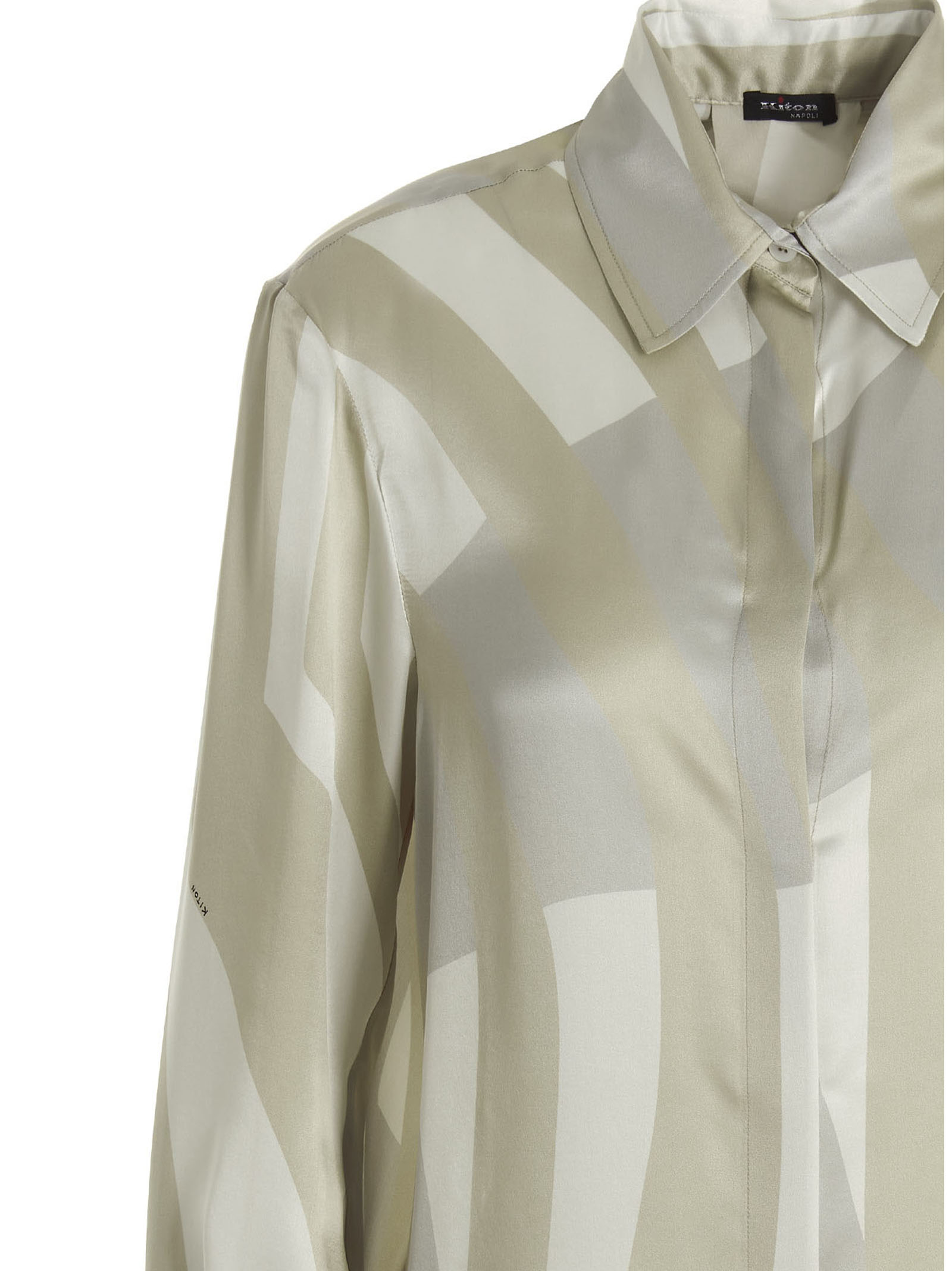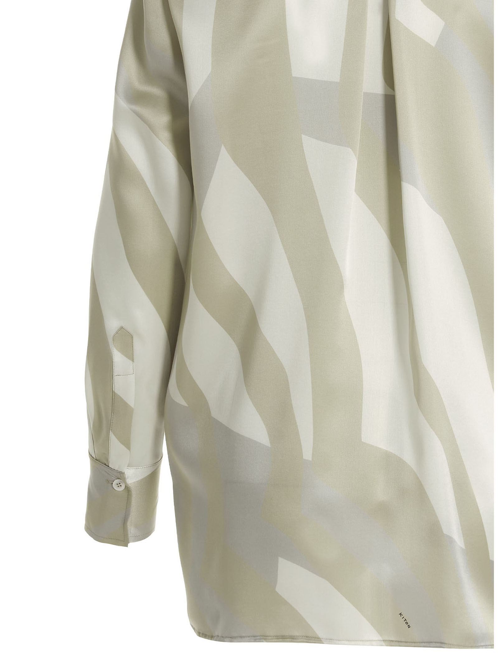 all-over print silk shirt with button closure, and long cuffed sleeves.