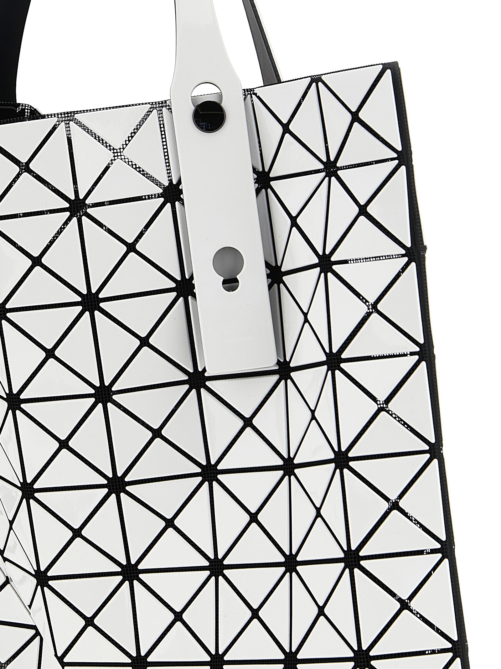 ‘Prism’ shopping bag in mesh and PVC fabric, double handle, inside pocket, glossy effect.