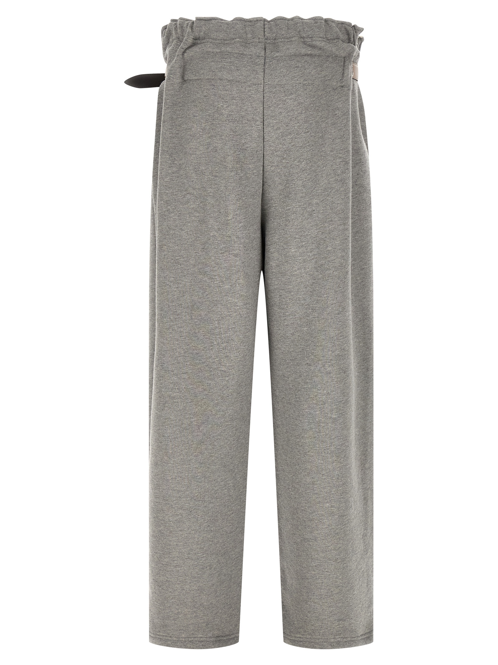 ‘Provincia’ gauze cotton pants, elastic with side split, adjustable drawstring and leather belt at the waist, pockets, low crotch and wide leg, front logo embroidery.