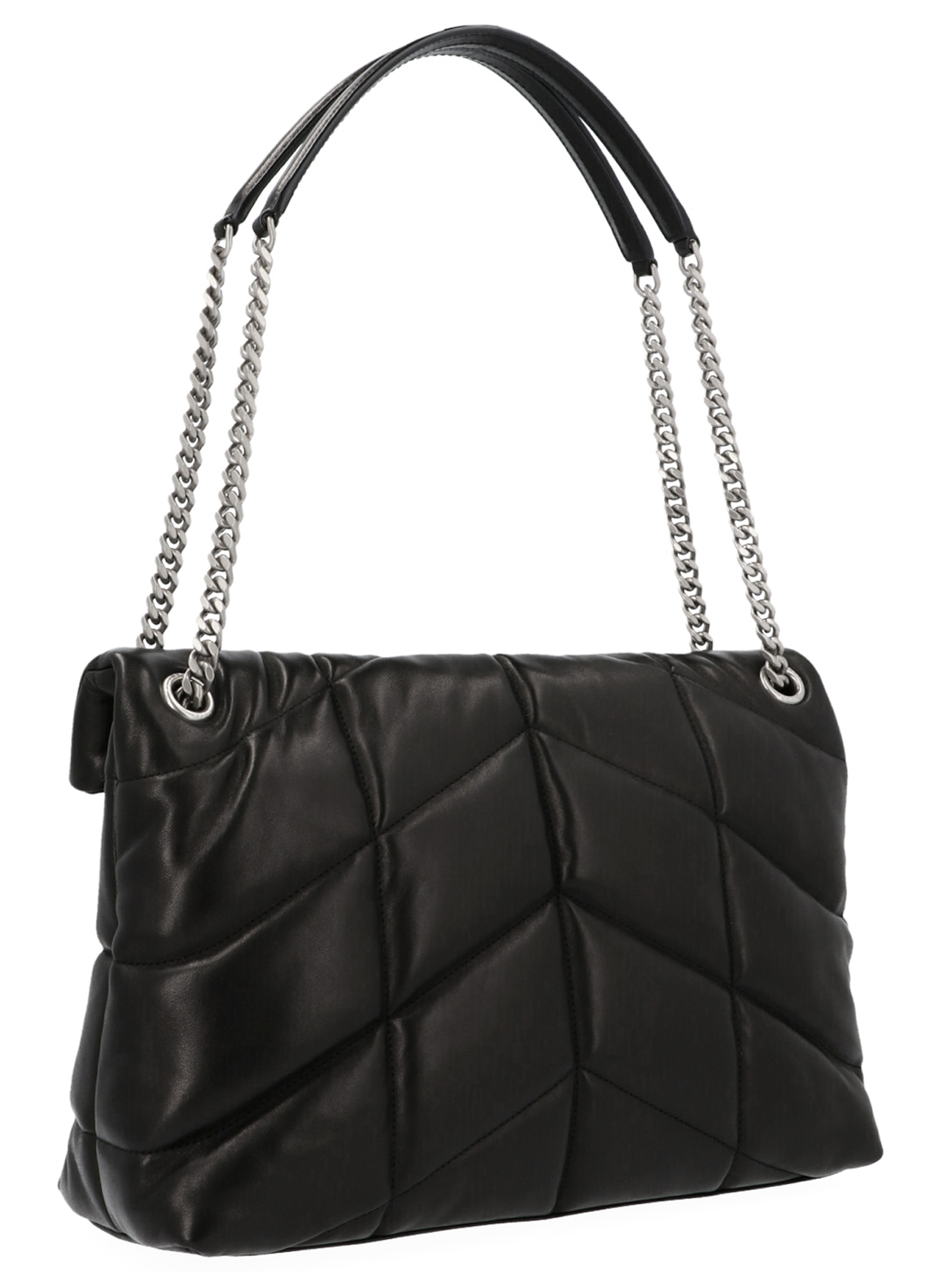 Saint Laurent ‘Puffer loulou’ shoulder bag in matelassé leather with logo, chain shoulder strap and silver hardware.