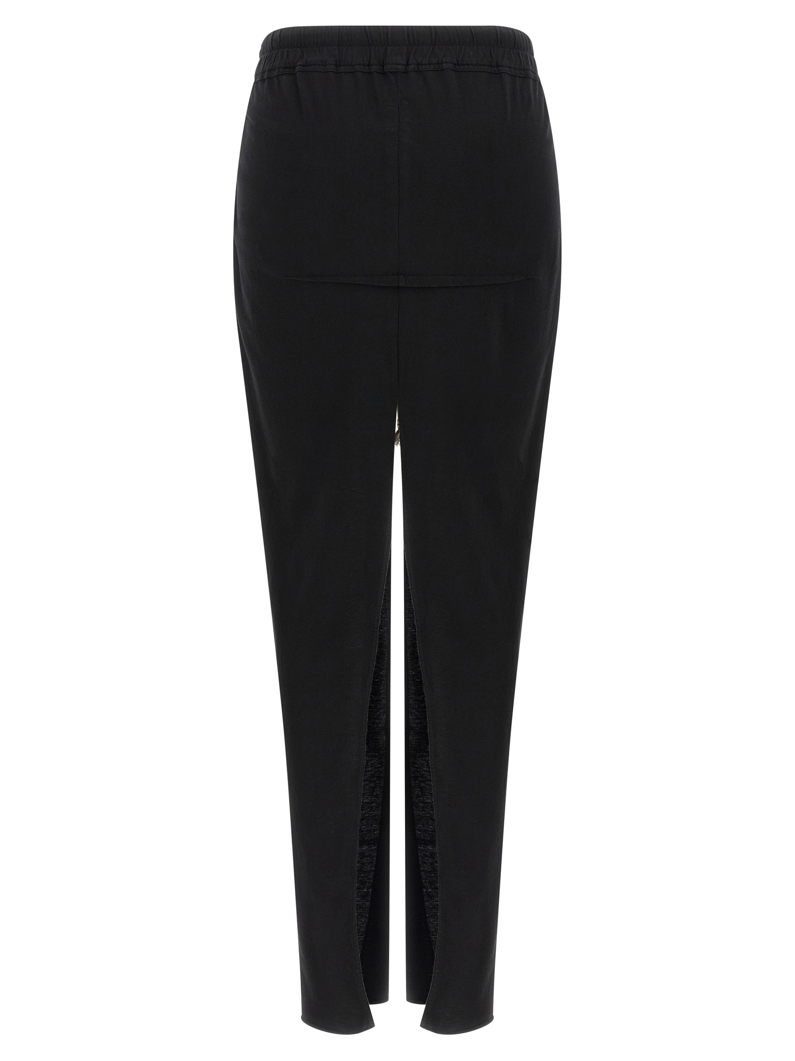 ‘Pull On Sliced Pillar’ long skirt in garment-dyed medium-weight cotton jersey, pillar construction, wide front and back split, drawstring elastic waistband, pockets.