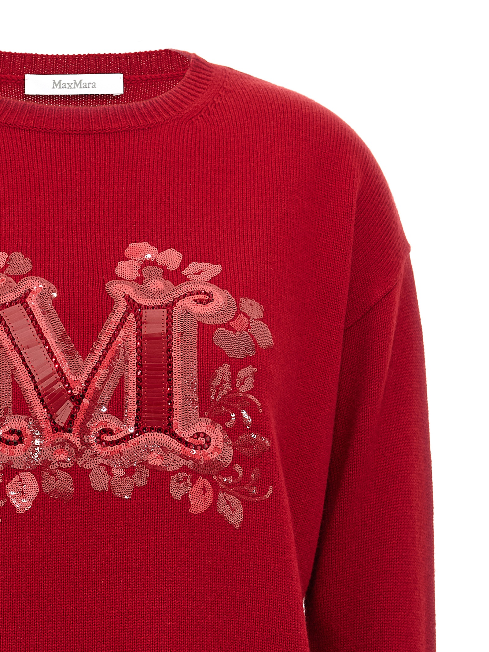 ‘Quota’ sweater in cashmere blend, crew neck, front logo embroidery with rhinestones, long sleeves.