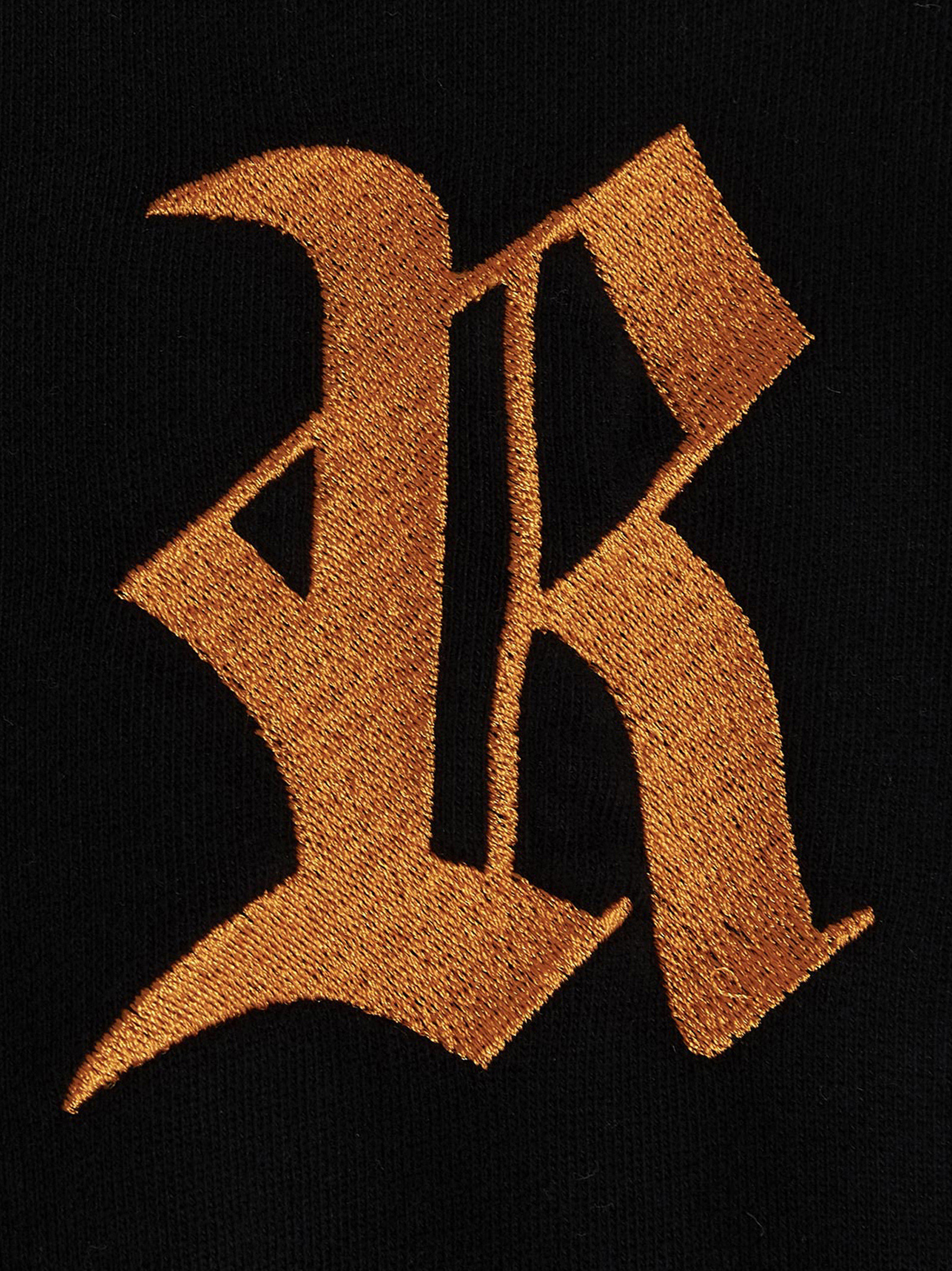 Cotton hoodie with front contrasting ‘R’ logo embroidery and long cuffed sleeves.