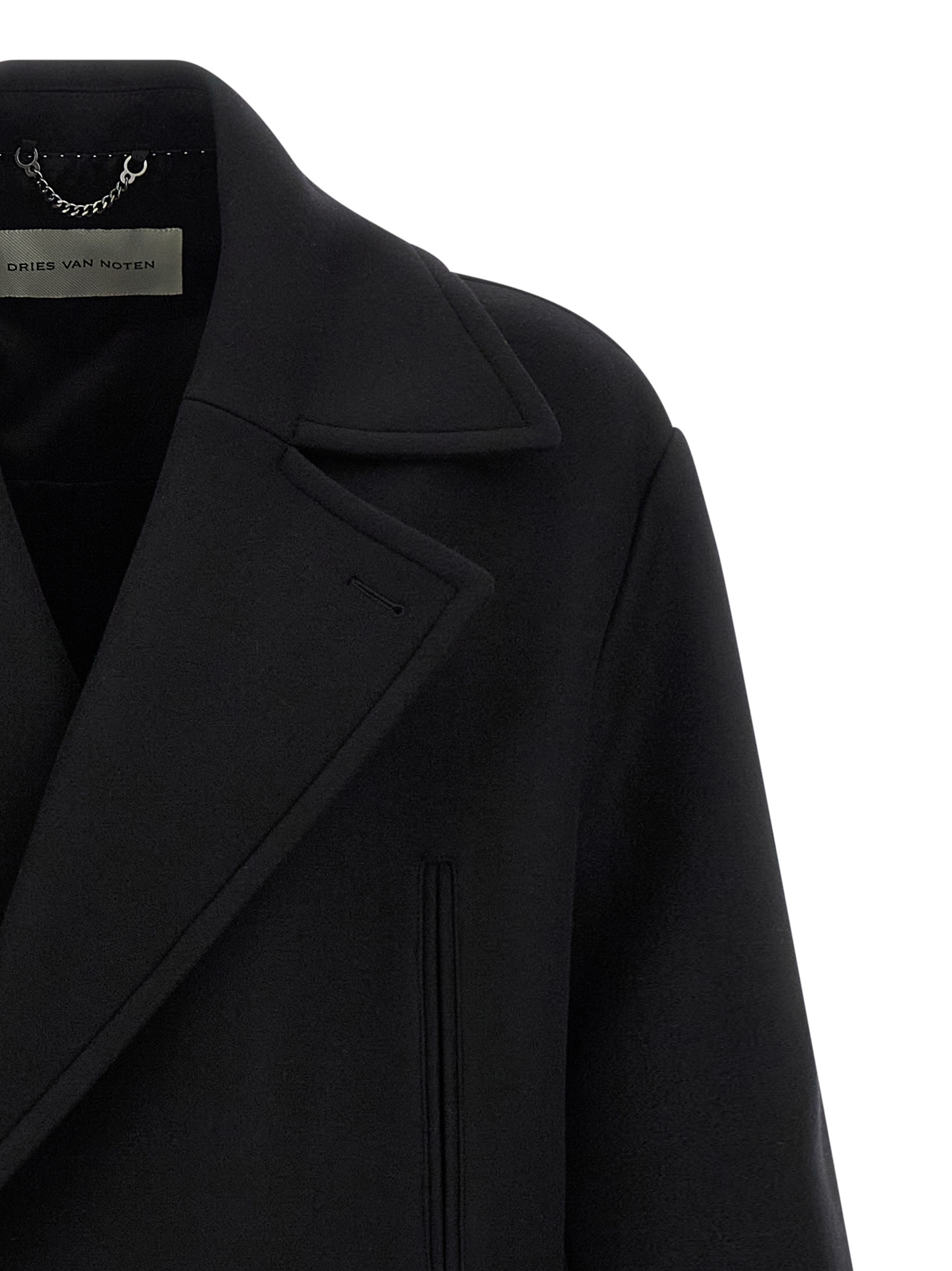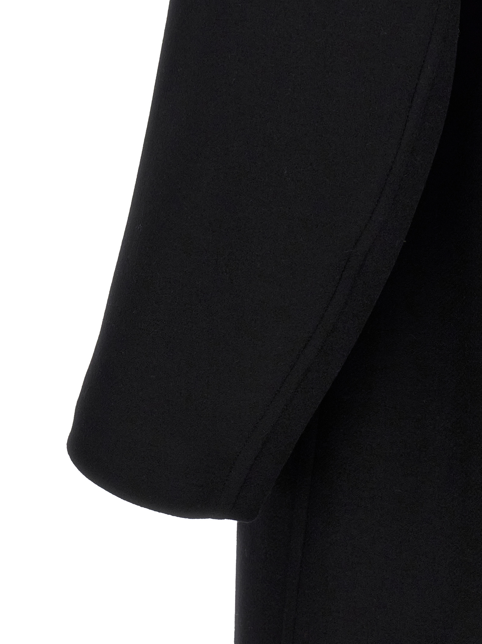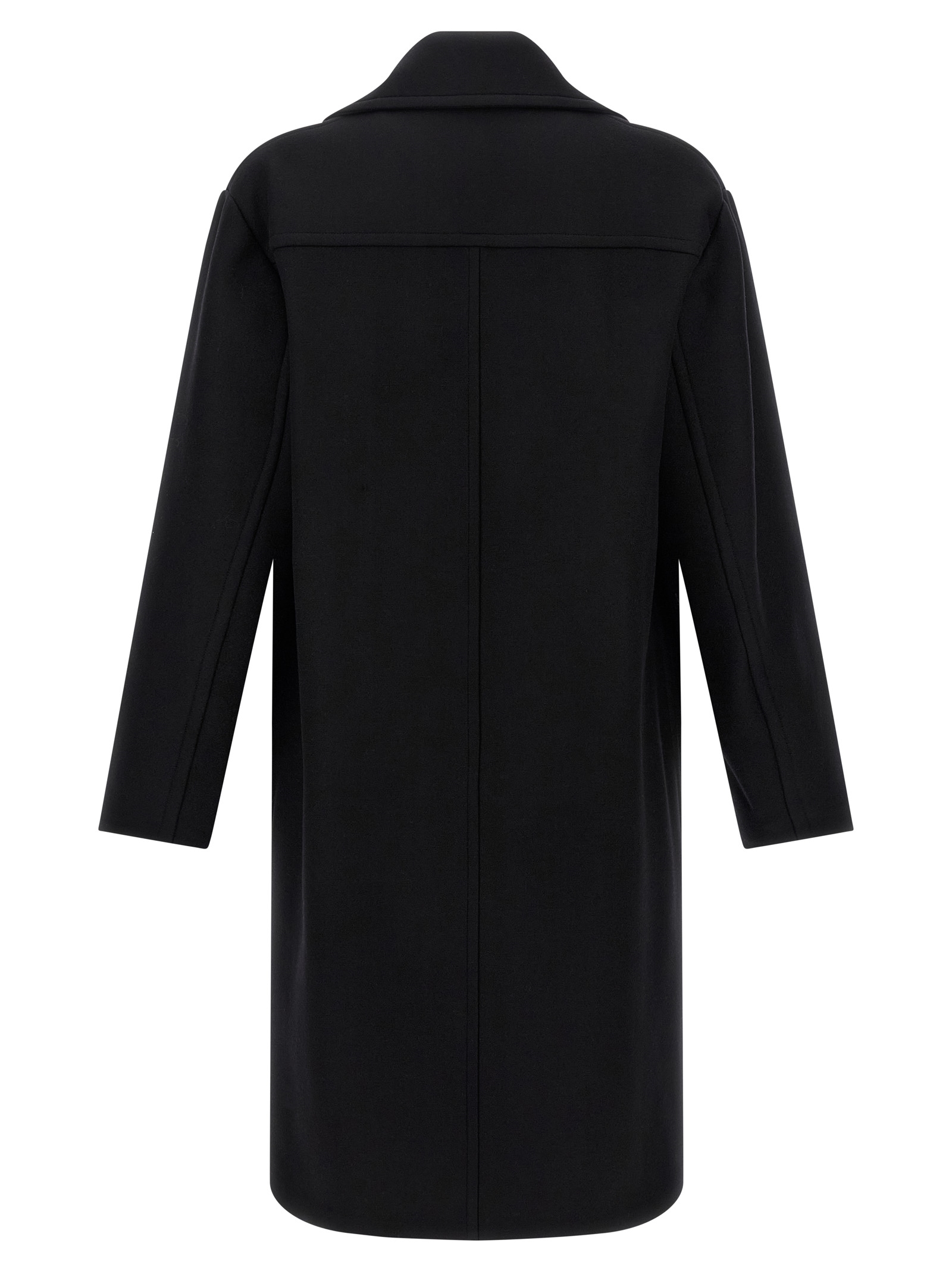 ‘Racos’ double-breasted wool coat with buttons, V-neck with lapels, double front pockets, long sleeves.