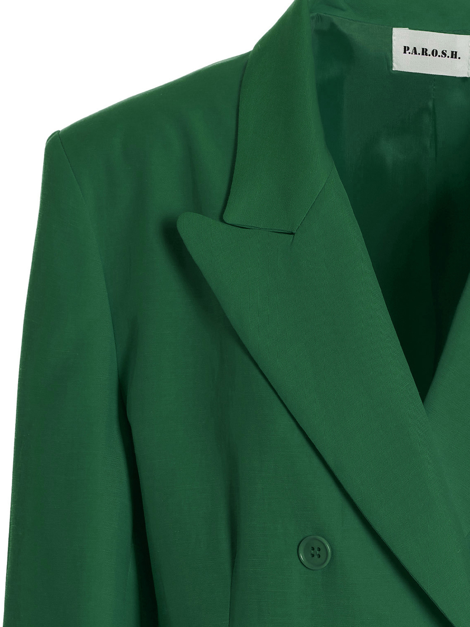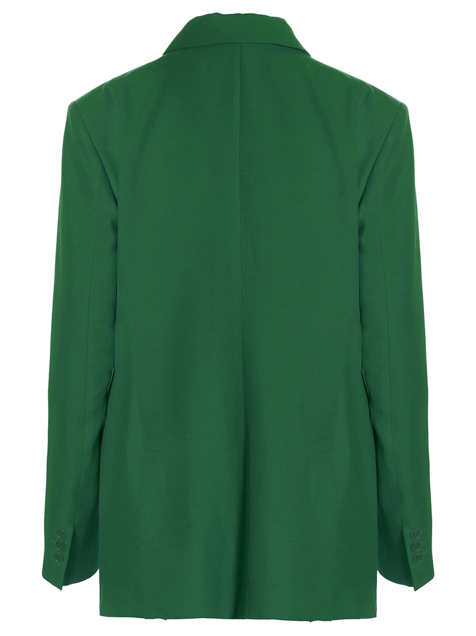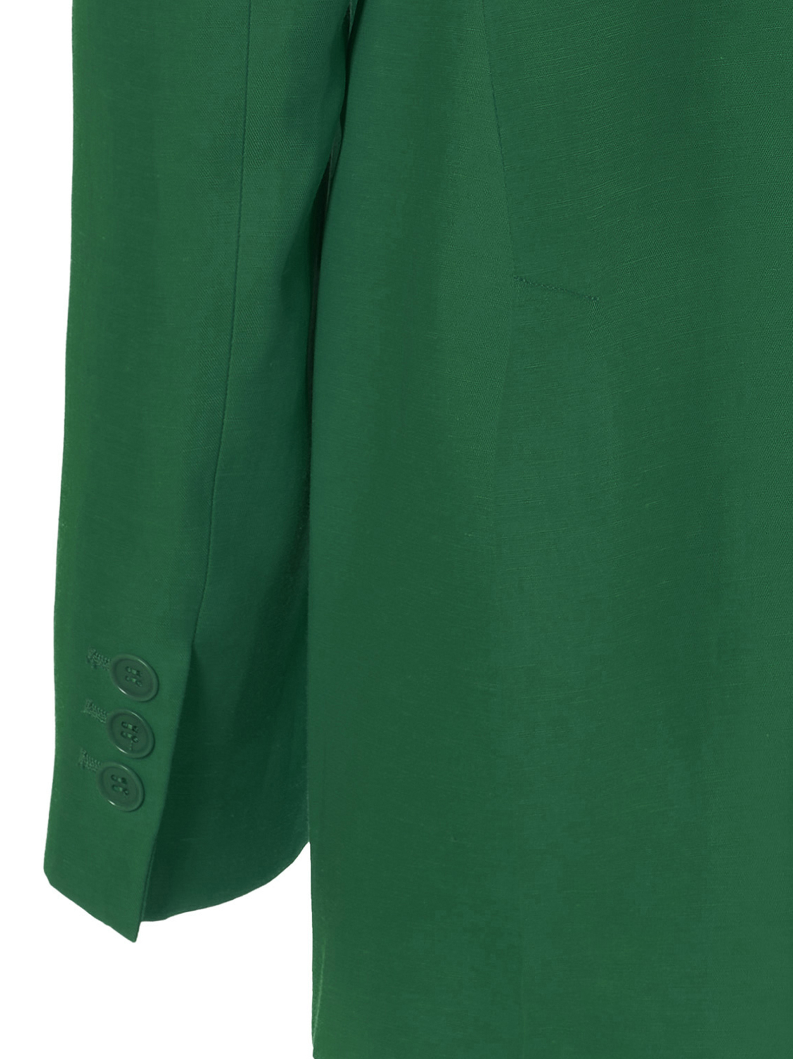 ‘Raisa’ linen blend blazer with double-breasted button closure, pockets, long sleeves, back vent.