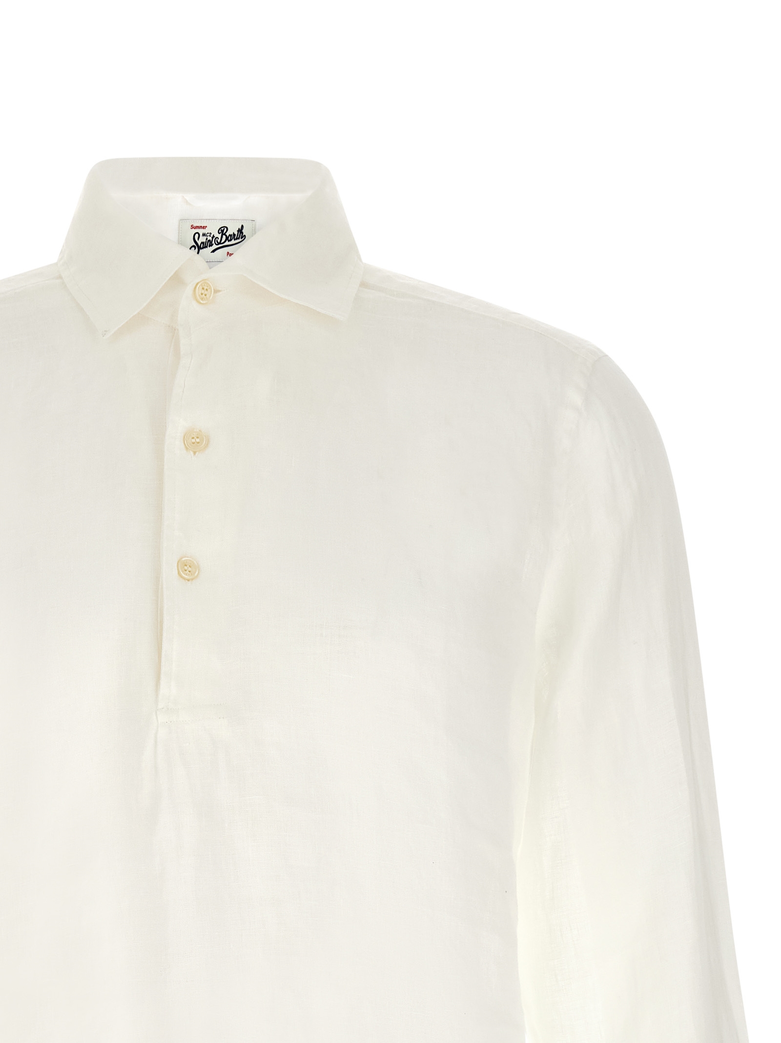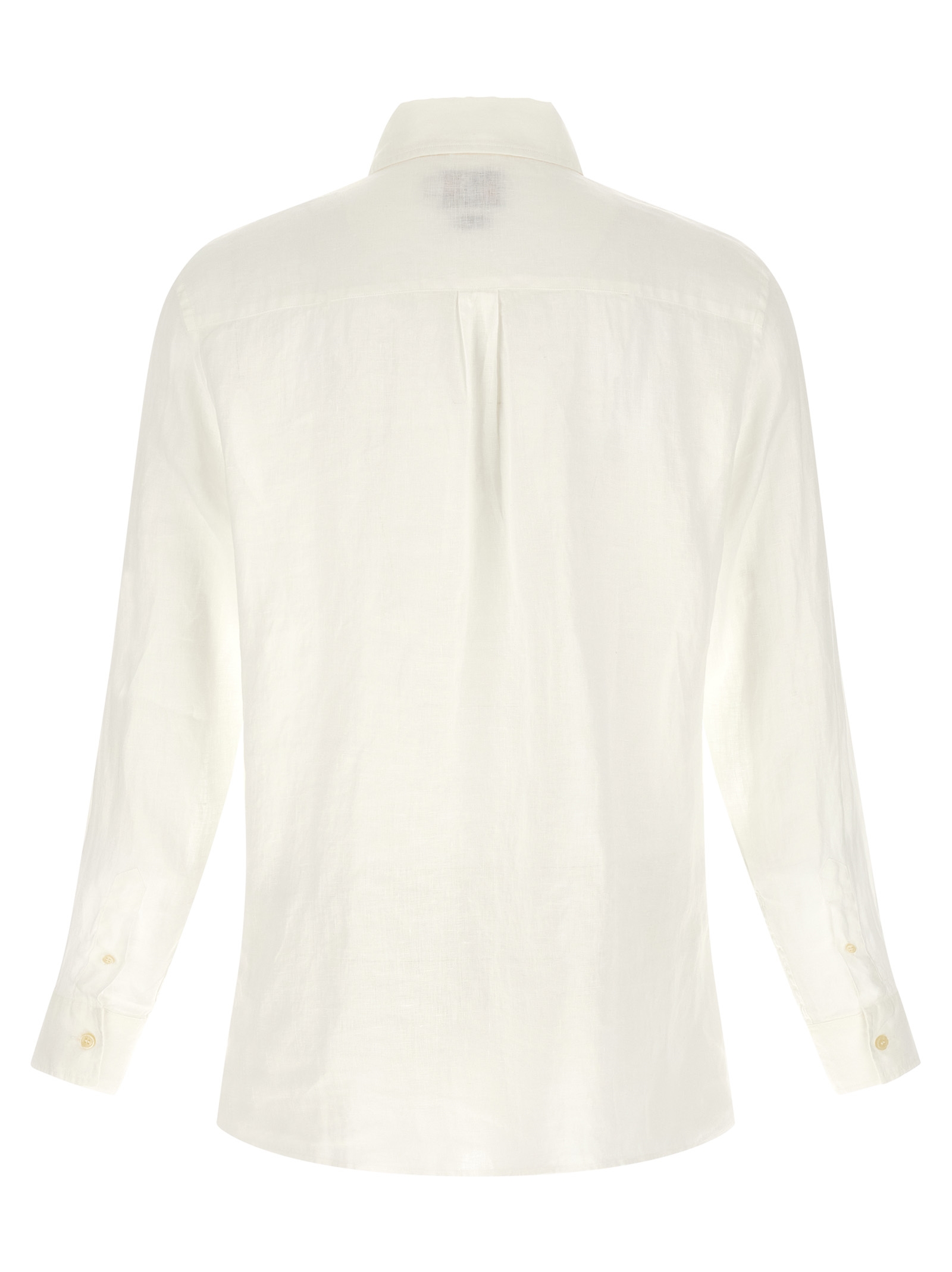 ‘Raphael’ polo shirt in pure linen with straight silhouette, collar and buttons, long cuffed sleeves, back rack with cannoncino pleats.