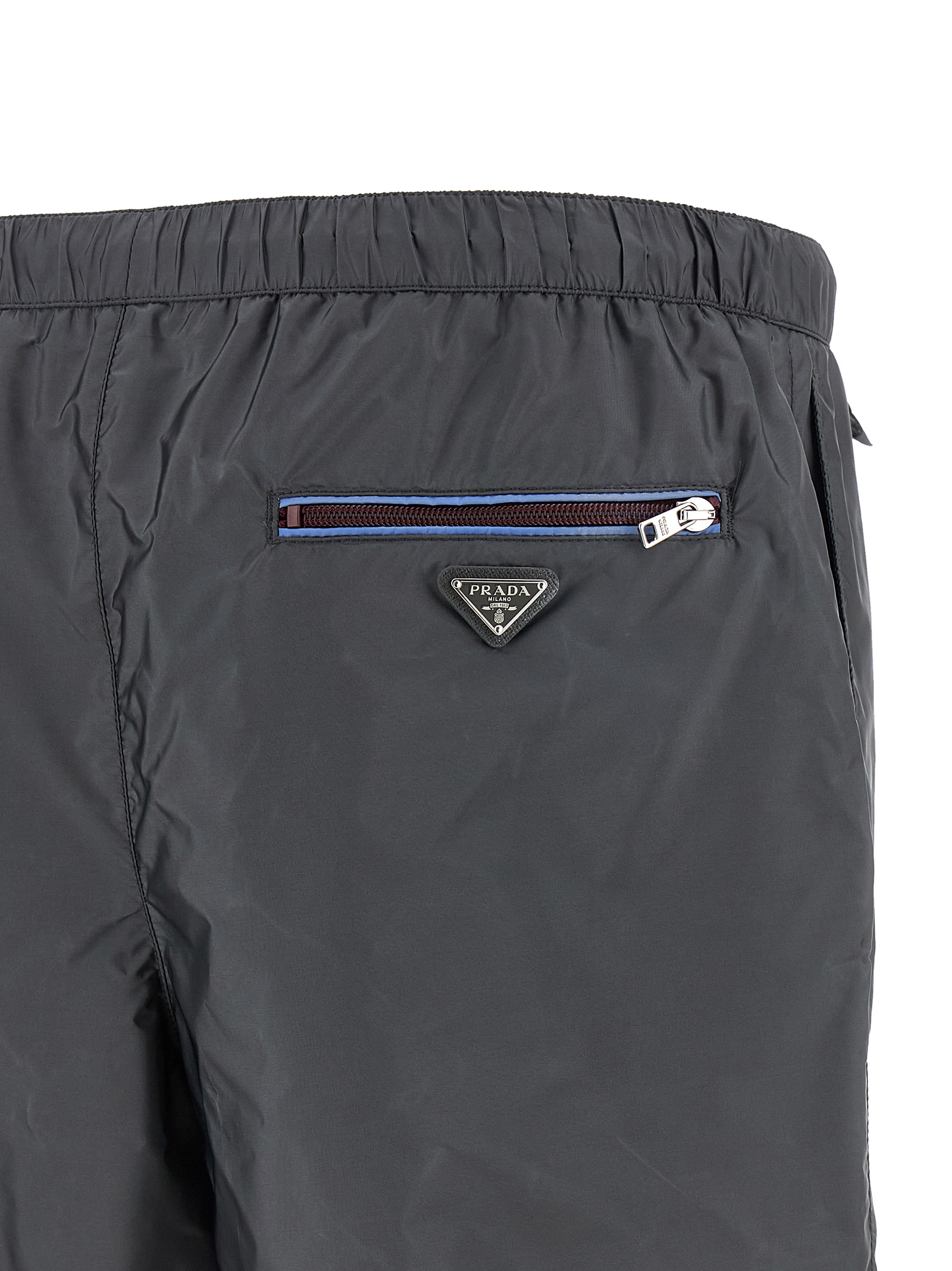 Re-Nylon Feather swimsuit with drawstring elastic waistband, pockets, triangle logo in enameled metal on the back.