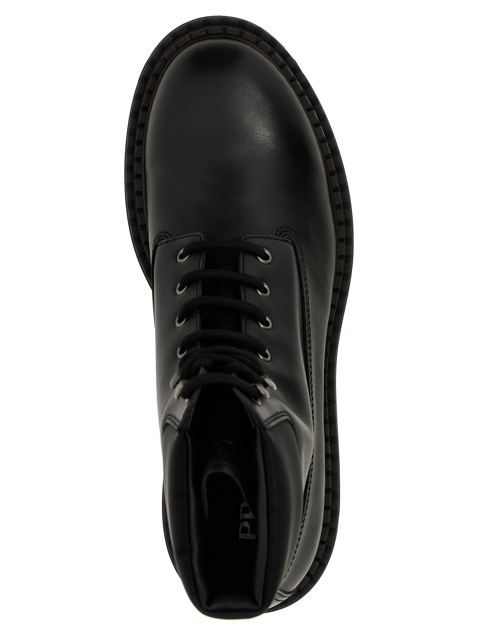 Leather ankle boots with Re-Nylon insert, laces and rubber sole.