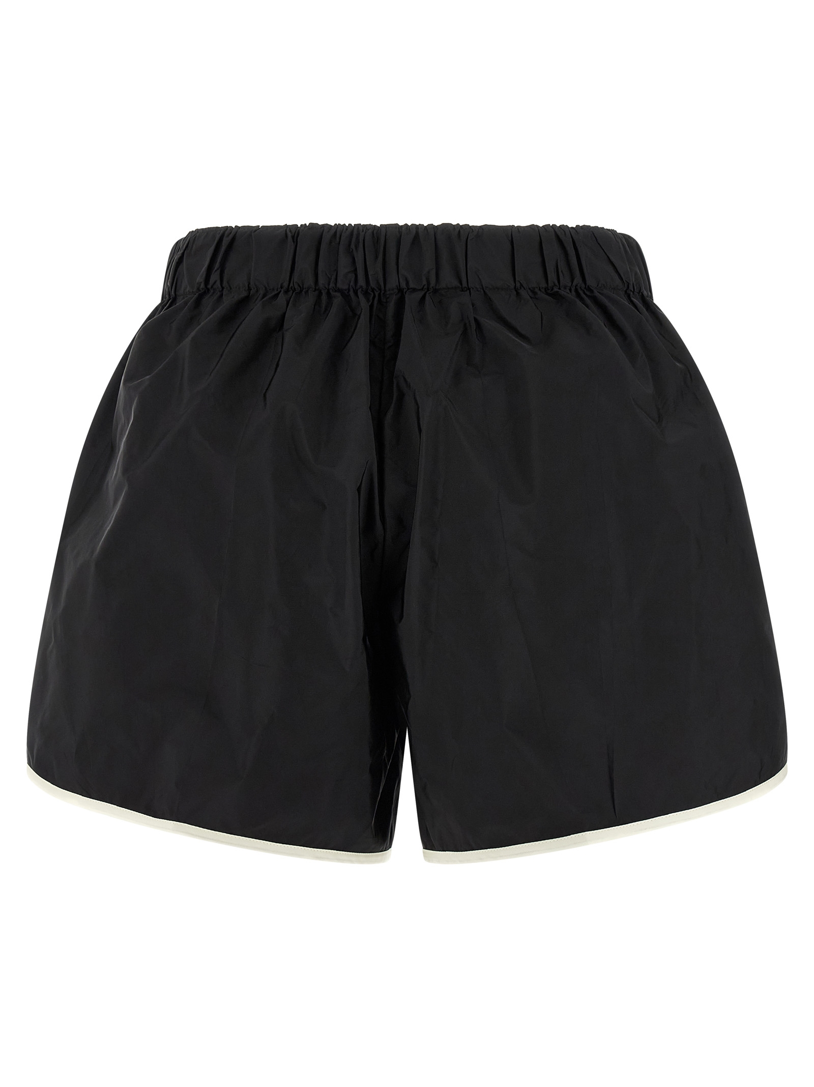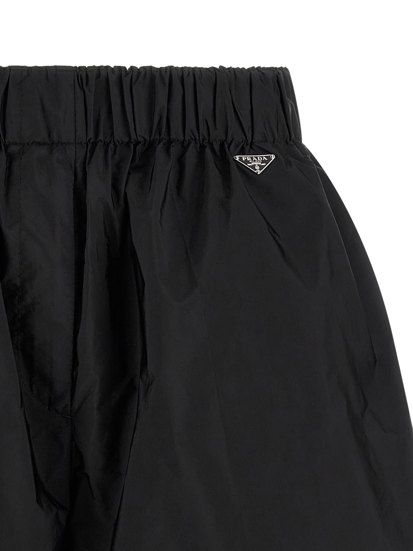 ‘Re-Nylon Piuma’ shorts, elastic waistband, side splits, contrast edging, triangle metal enamel logo detail on the front.