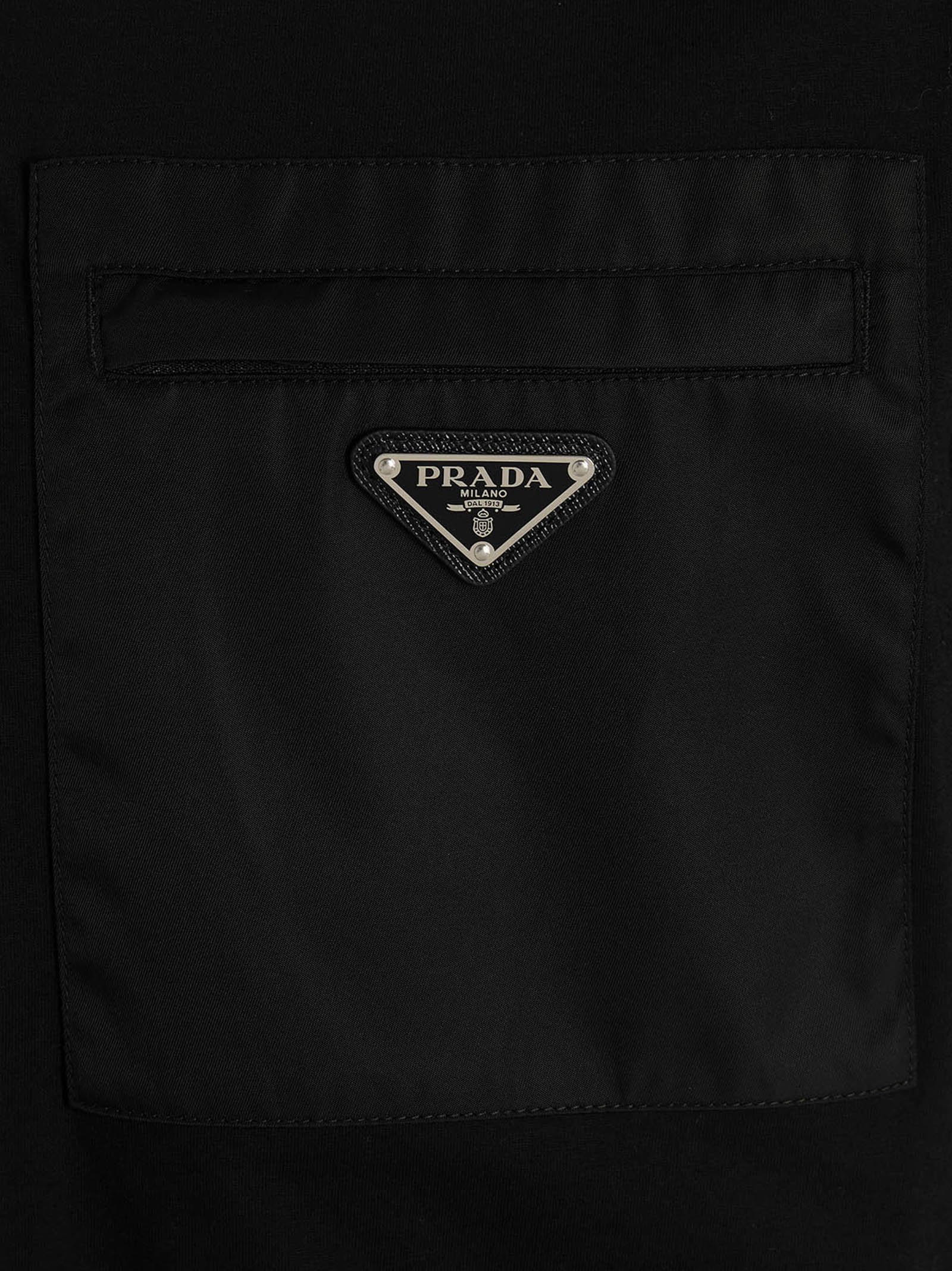 Cotton jersey T-shirt, Re-Nylon pocket with enameled metal triangle logo and zip, crew neck, short sleeves.