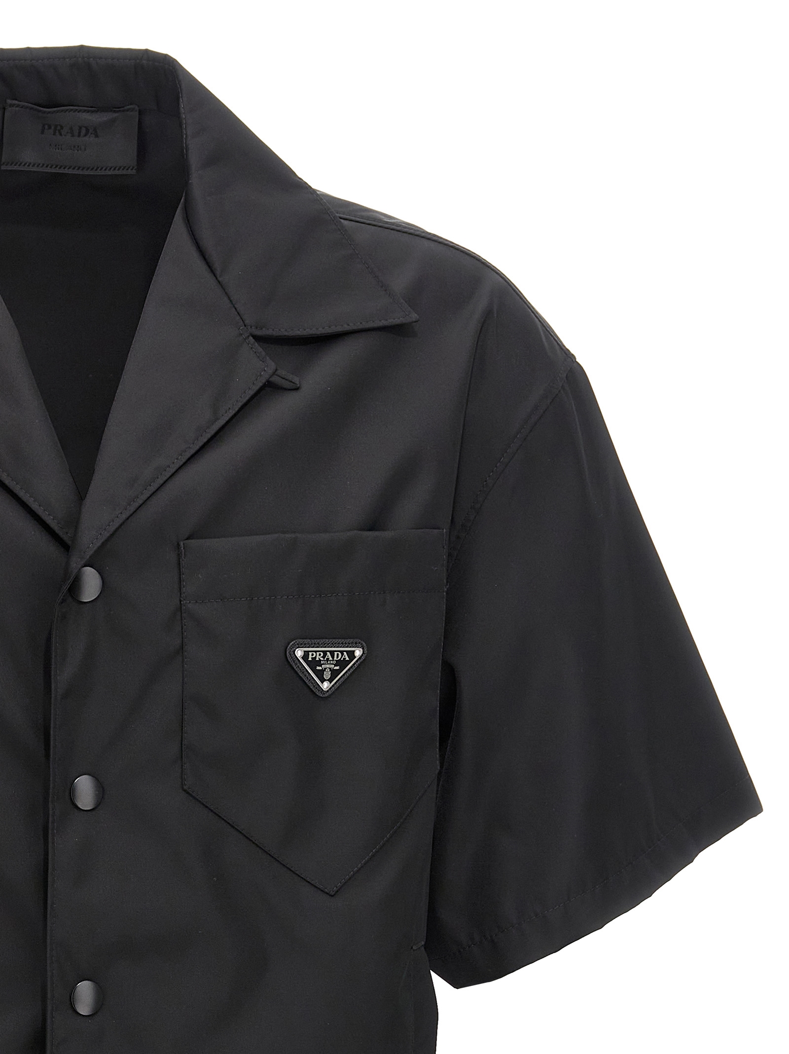 Re-Nylon bowling shirt, pocket with triangle logo in enamelled metal, snap button closure, short sleeves, pockets.