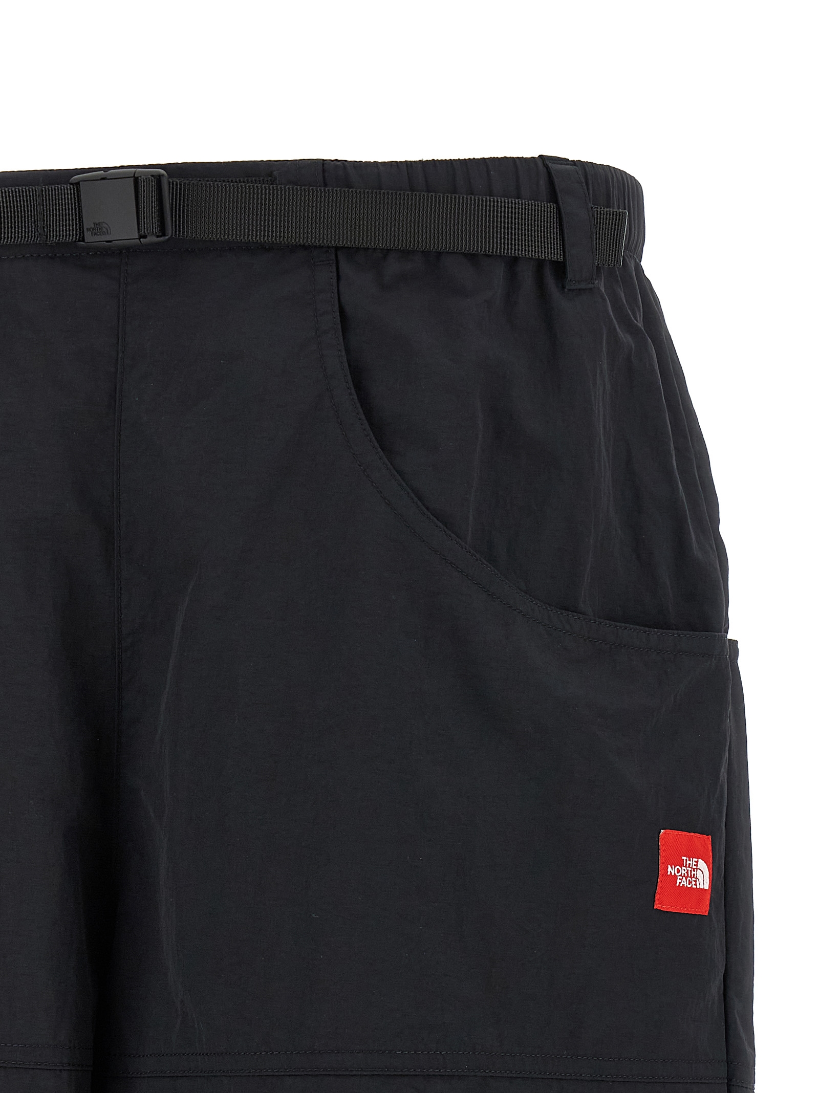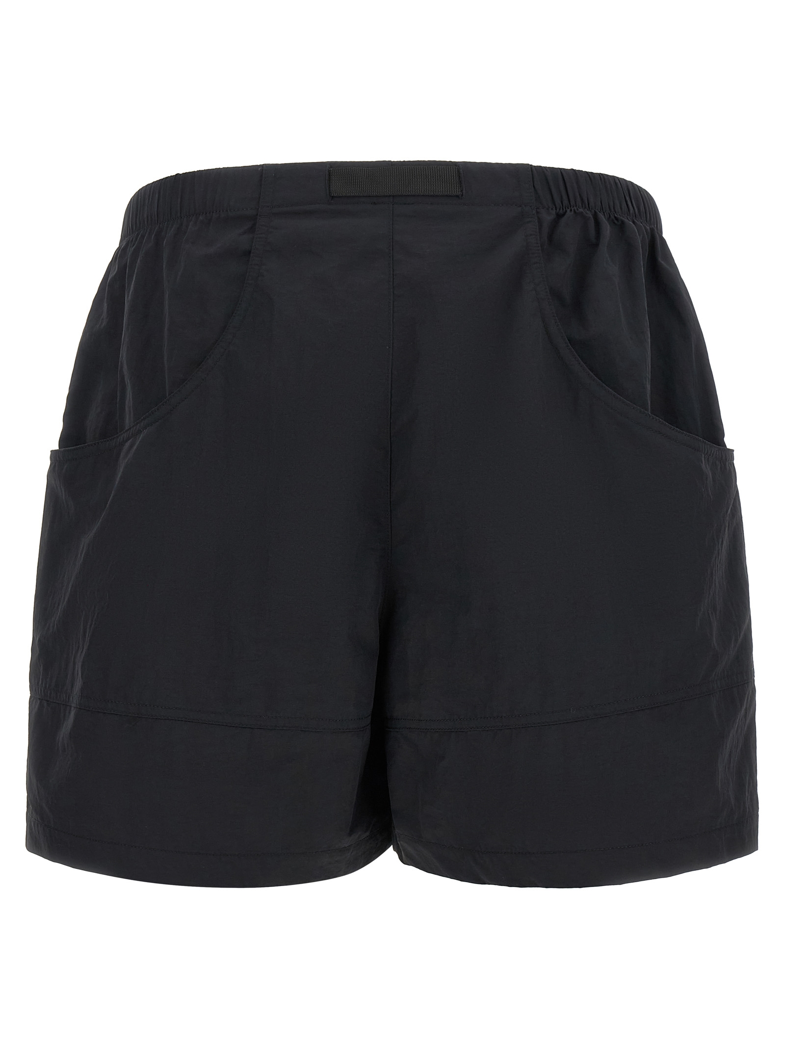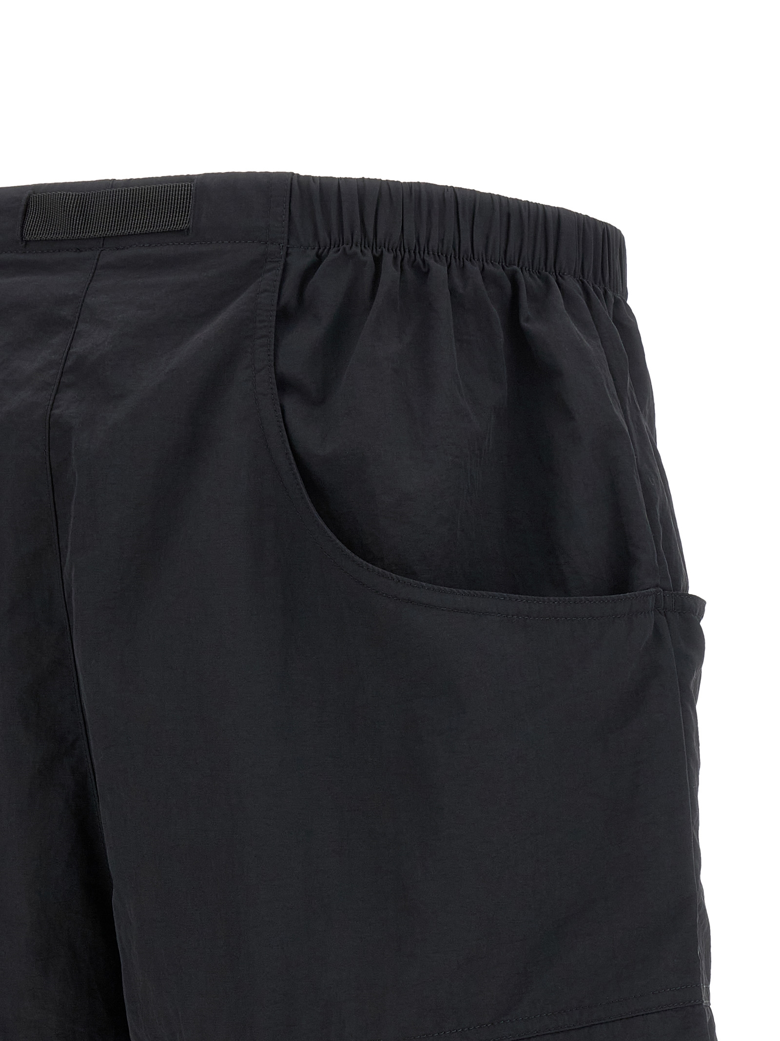 Bermuda shorts in water-repellent technical fabric, front ‘Red Box’ logo patch, wide leg, elastic waistband with integrated adjustable belt with tuc closure, pockets.