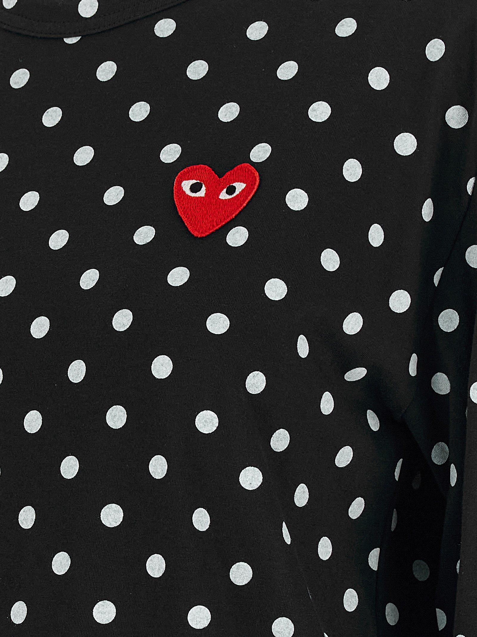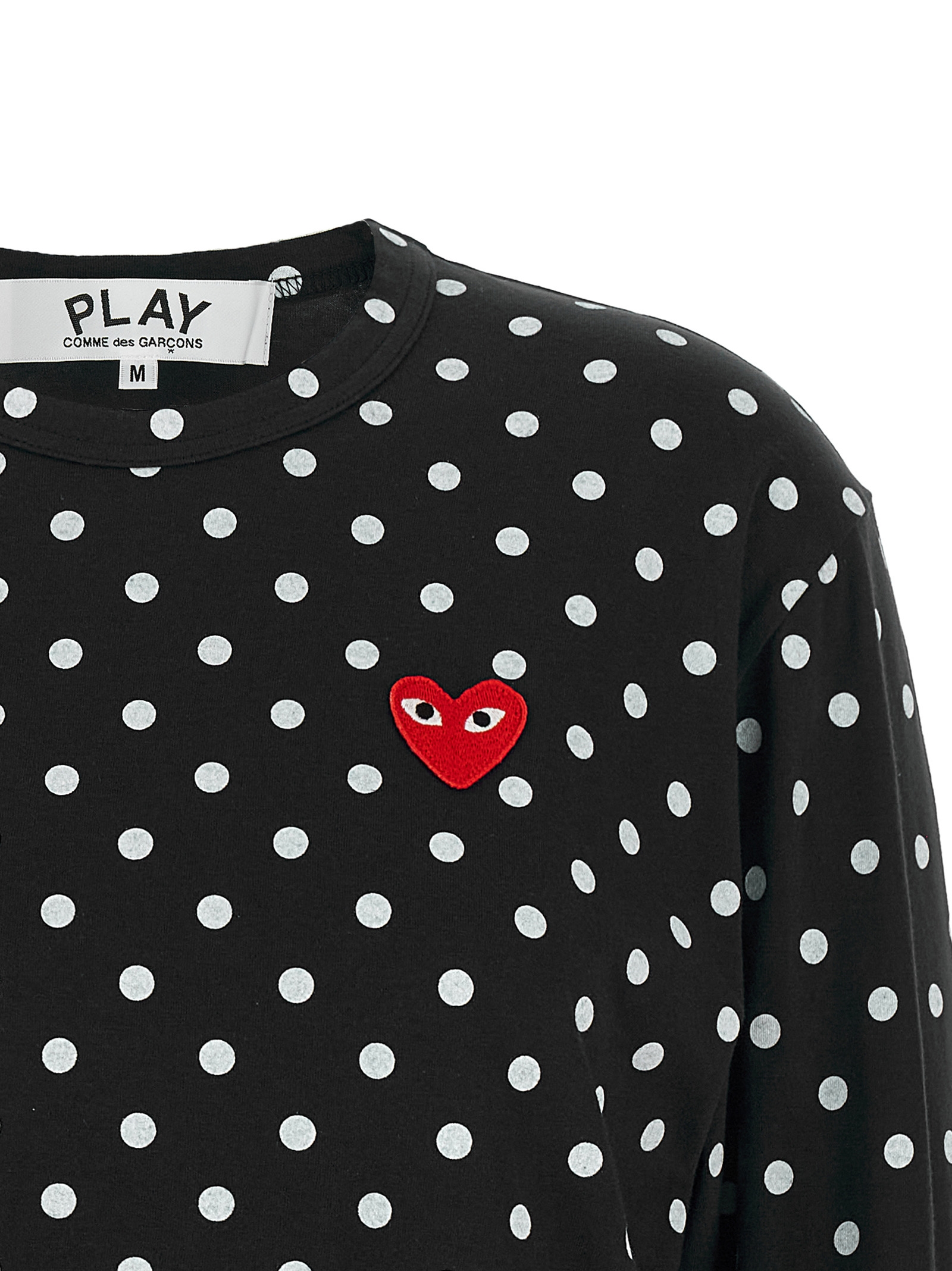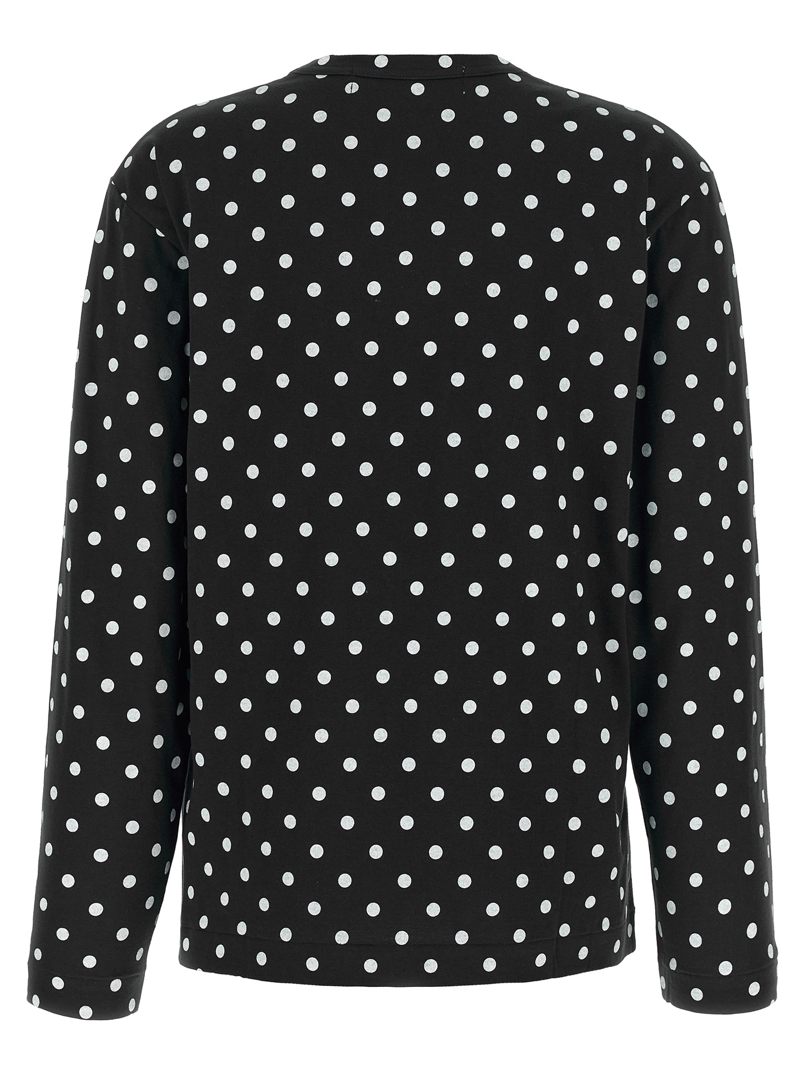 Polka dot print cotton t-shirt, front ‘Red Emblem’ patch, crew neck. Long sleeves.