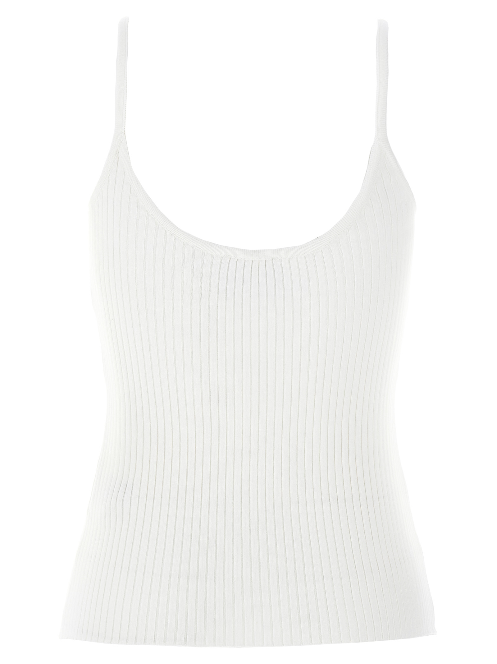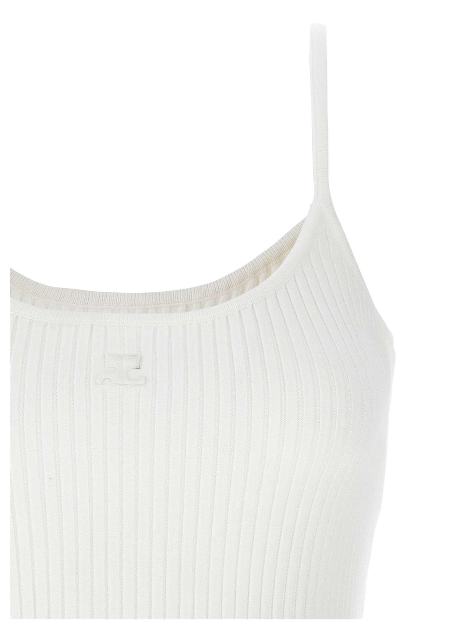 Reedition ribbed knit top with round neckline, thin straps, and front logo patch.