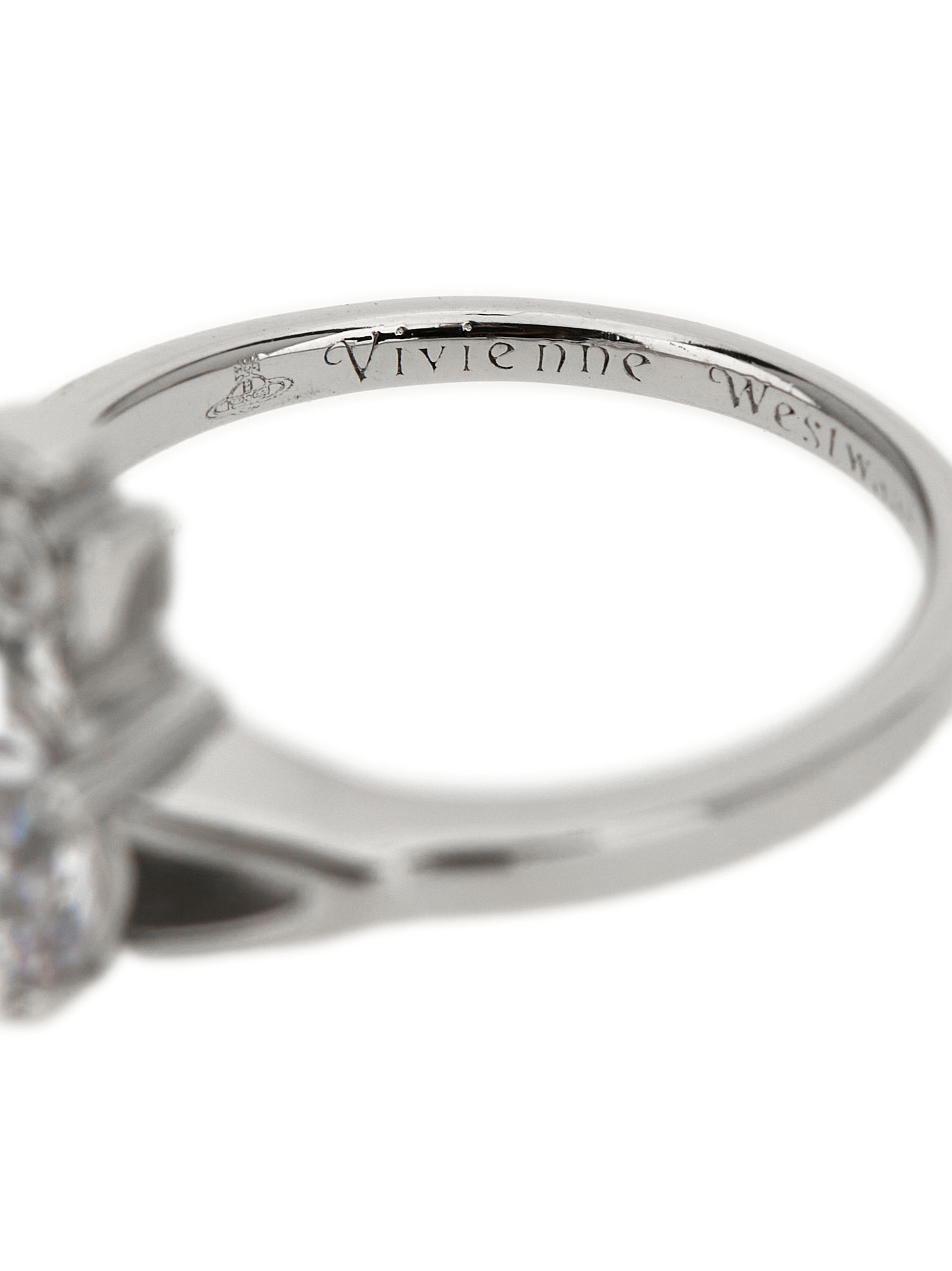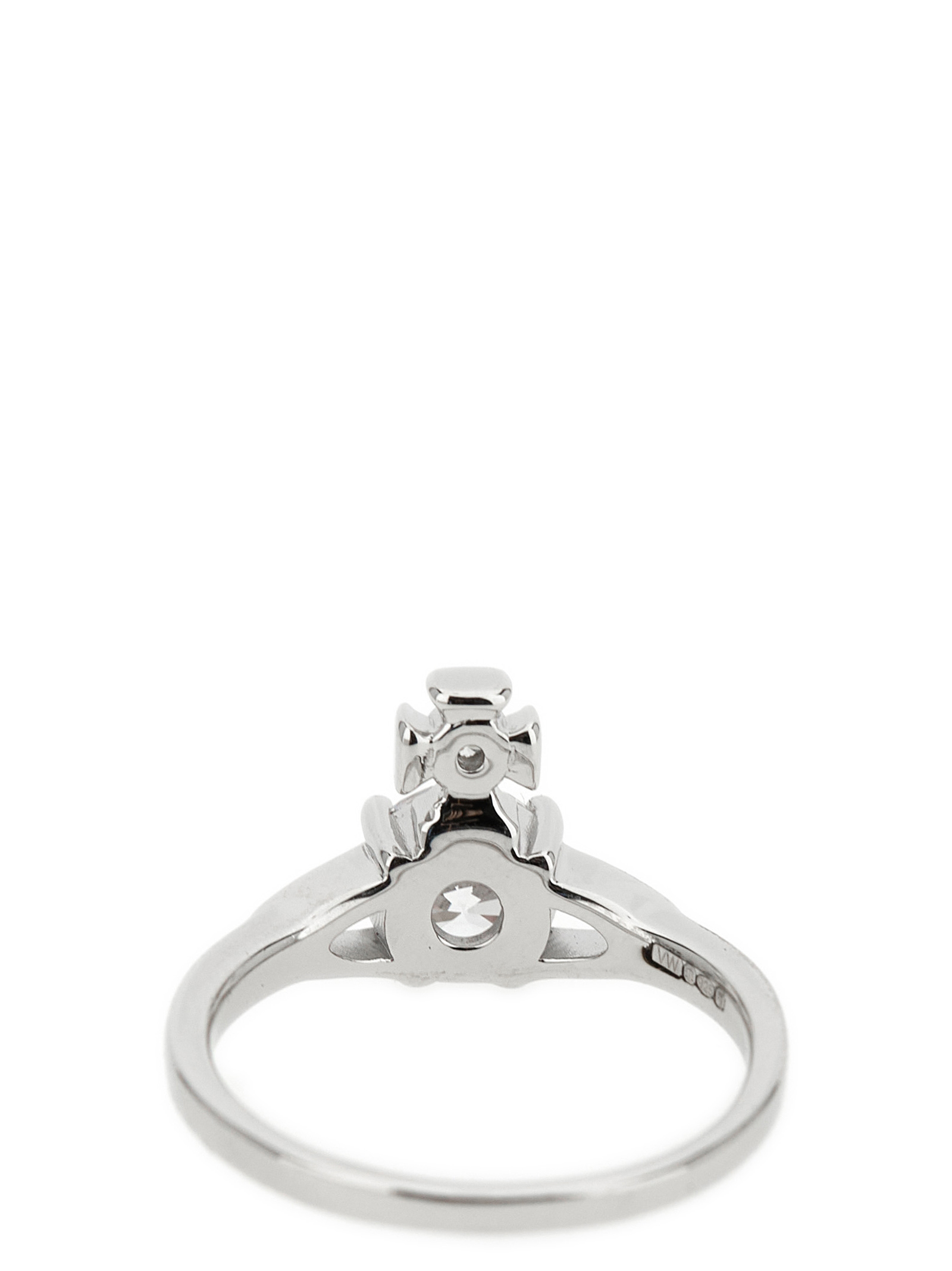 Silver plated metal ‘Reina Petite’ ring with central rhinestones and logo detail.