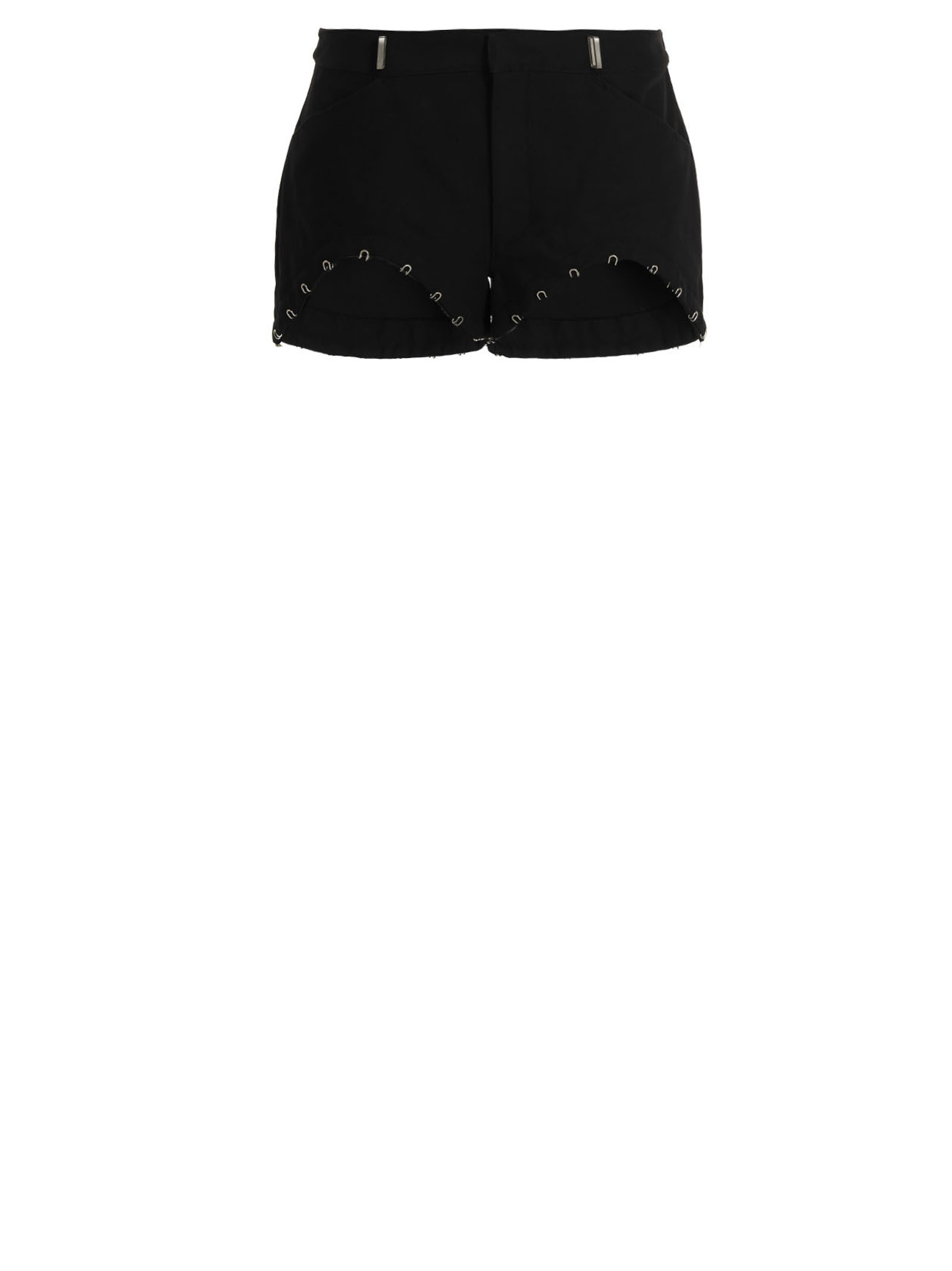 Cotton and leather pants with removable hook-and-eye bottom, high waist, hook-and-eye and button fastening.