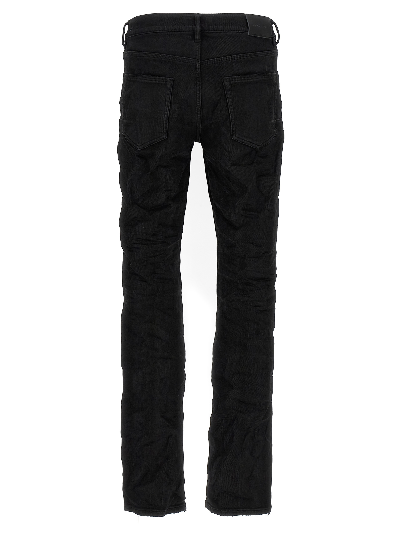 ‘Resin Flare’ stretch cotton denim jeans, low waist, slightly flared leg at the bottom, button closure, pockets.