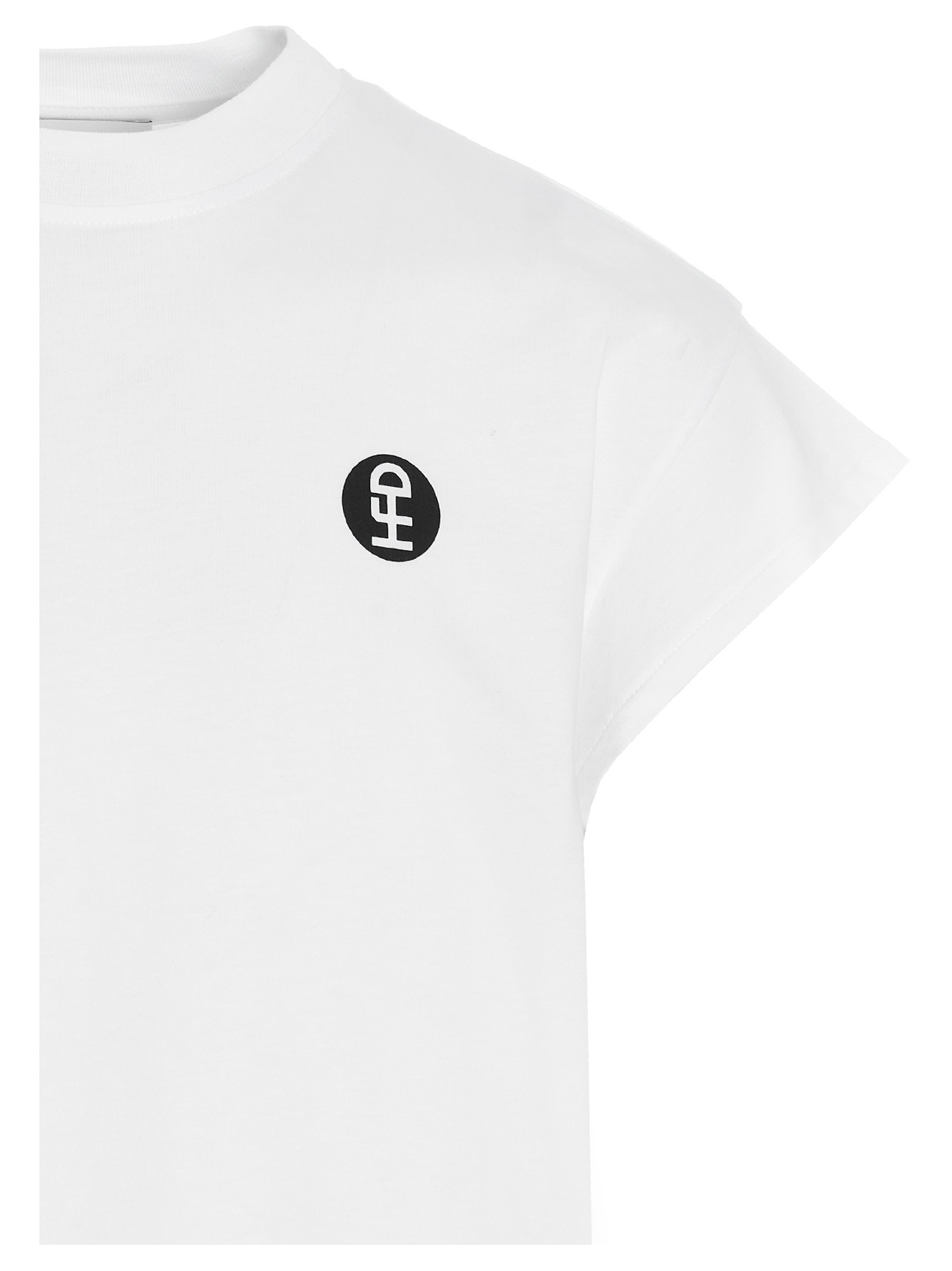Cotton T-shirt featuring a maxi print at the back and side zips.