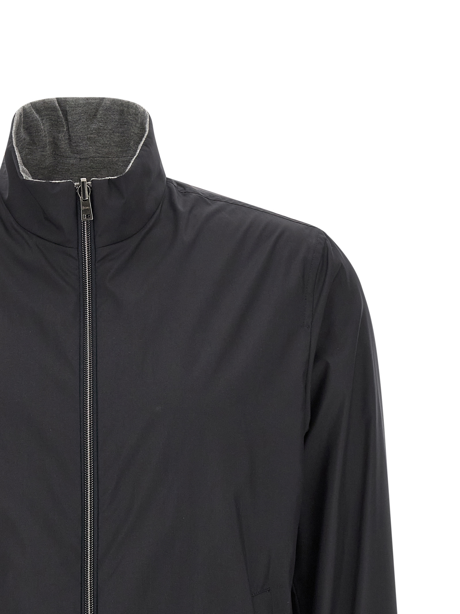 Reversible light bomber jacket in technical fabric and viscose mélange, high neck, front zip closure, pockets, long sleeves with elastic cuffs, elastic hem.