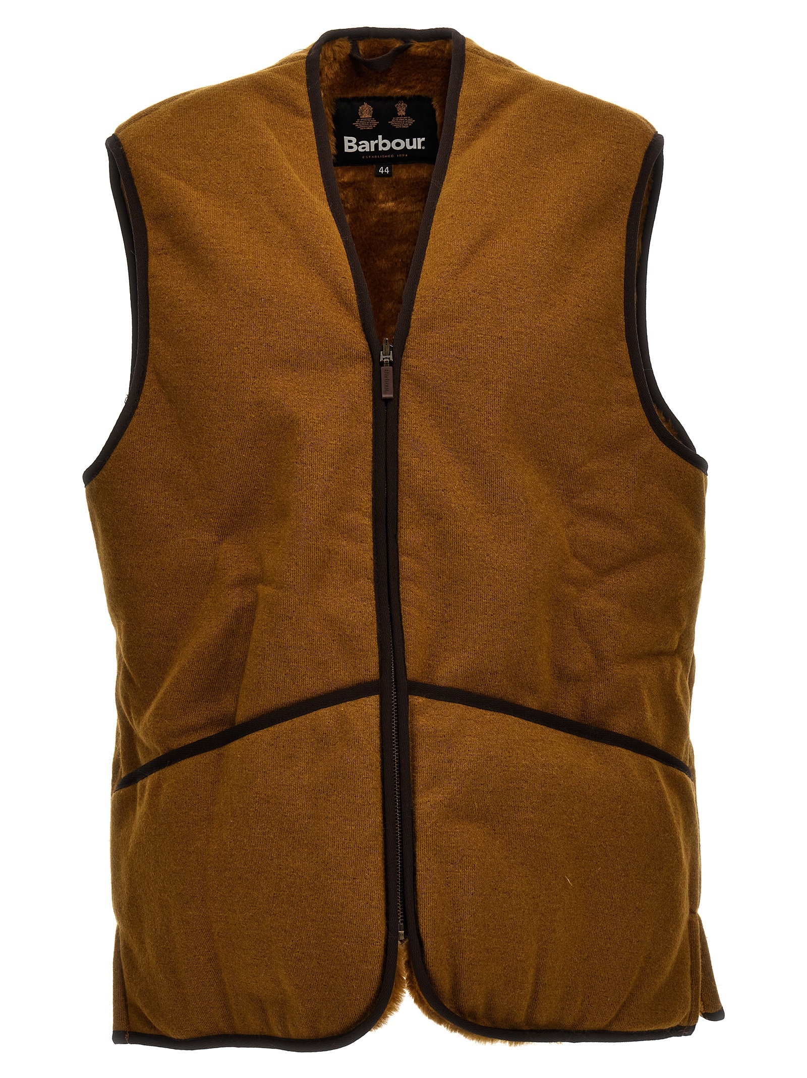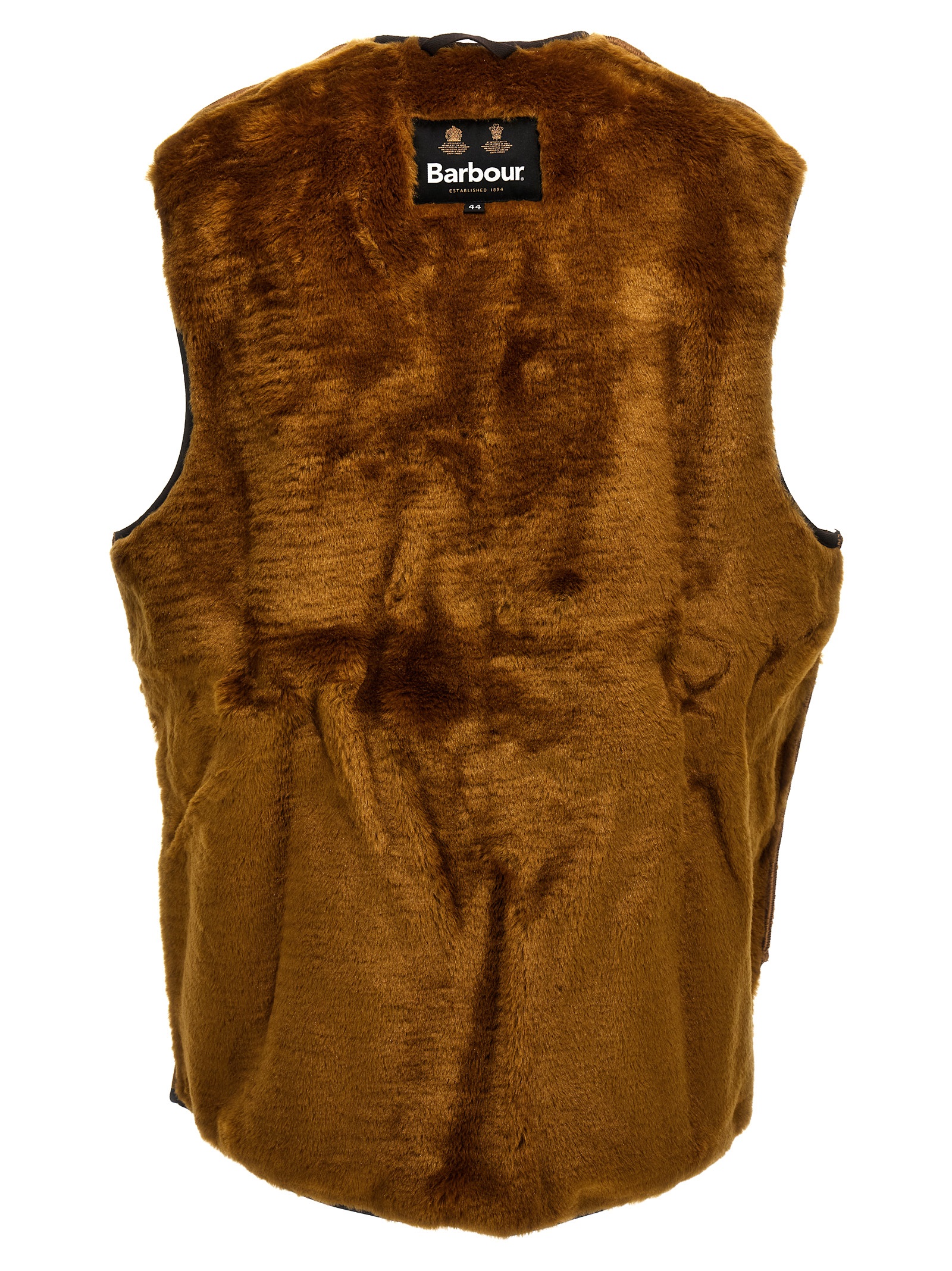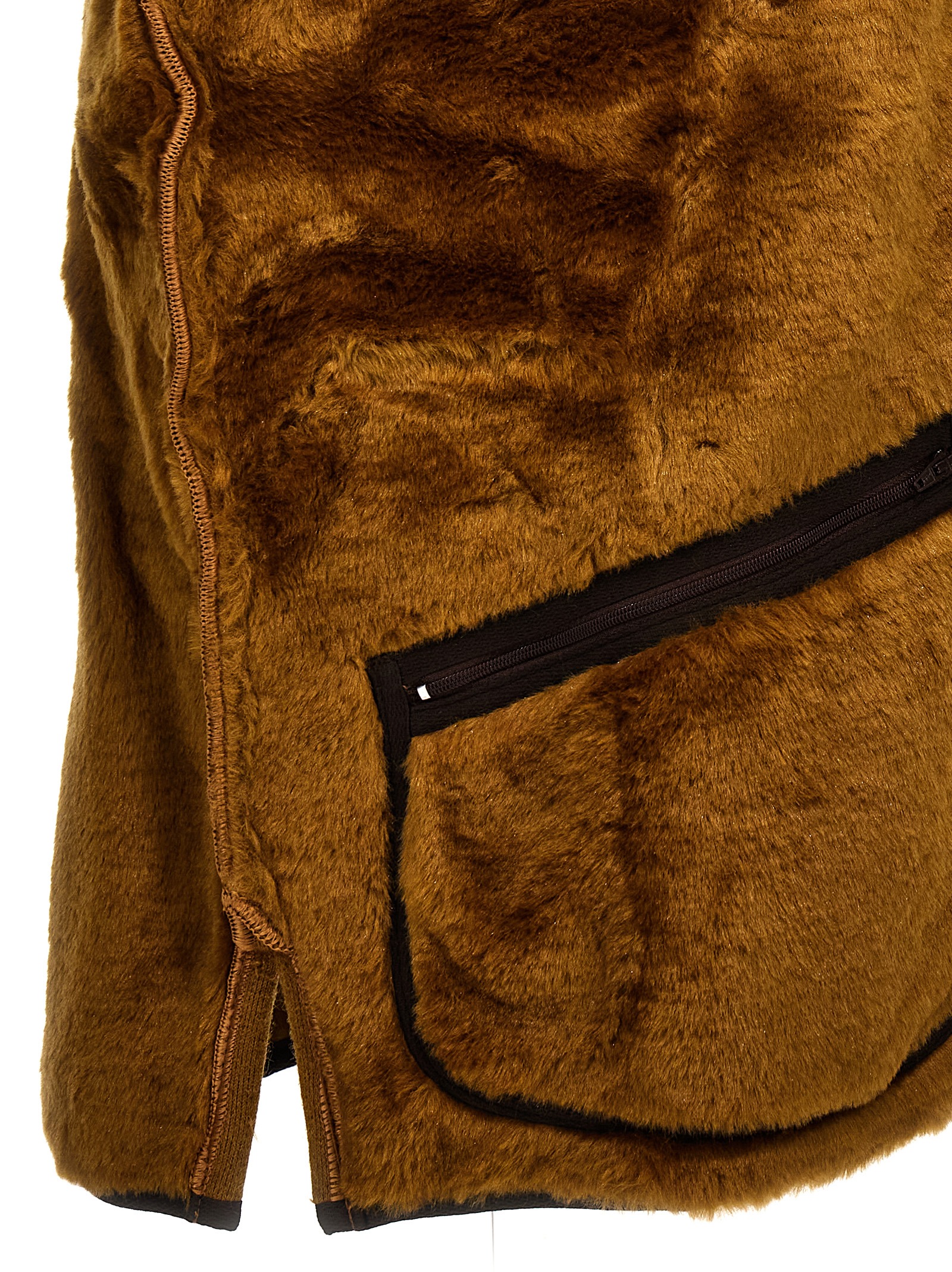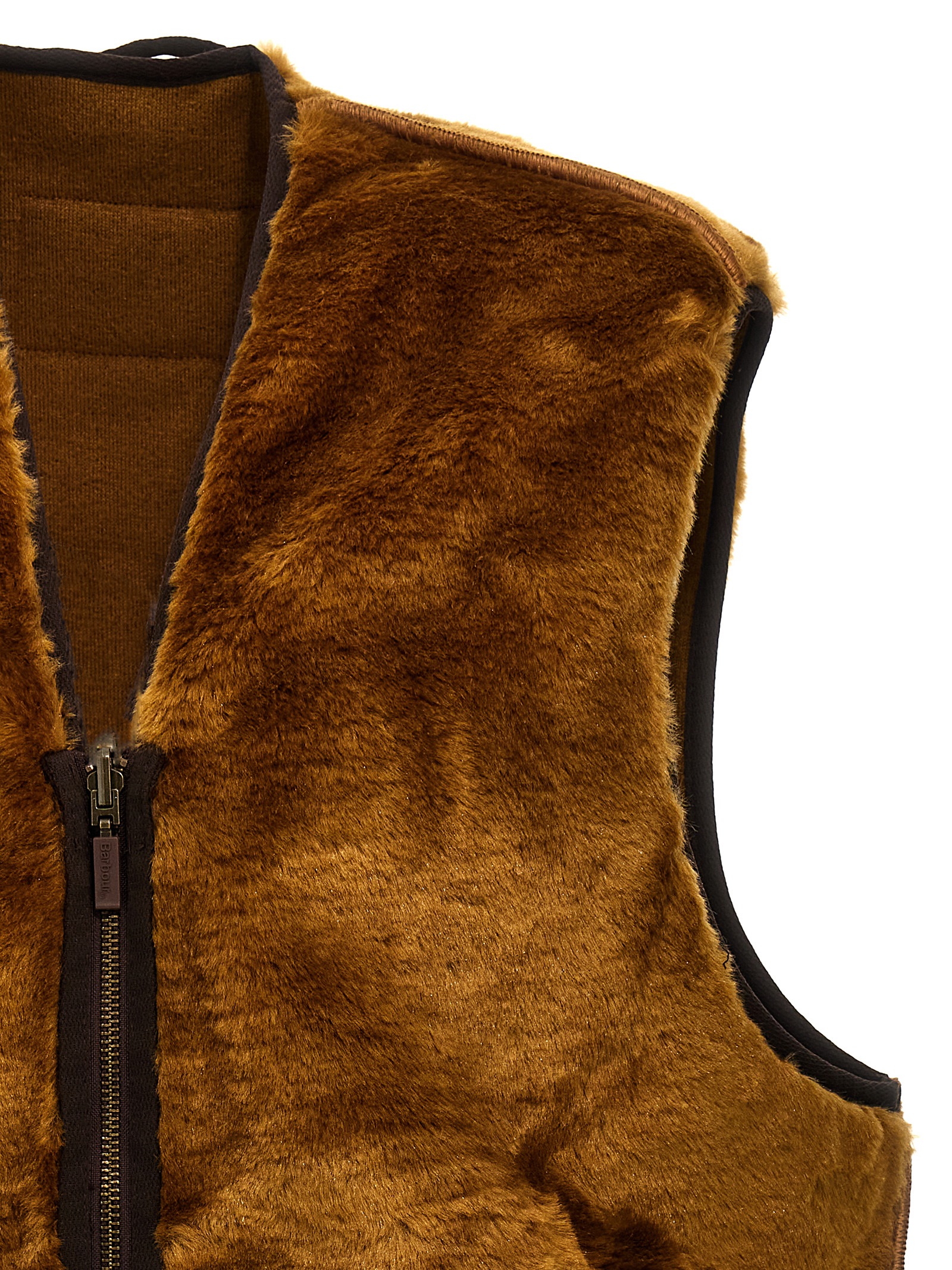 Reversible vest with faux fur part, zip closure, and pockets.