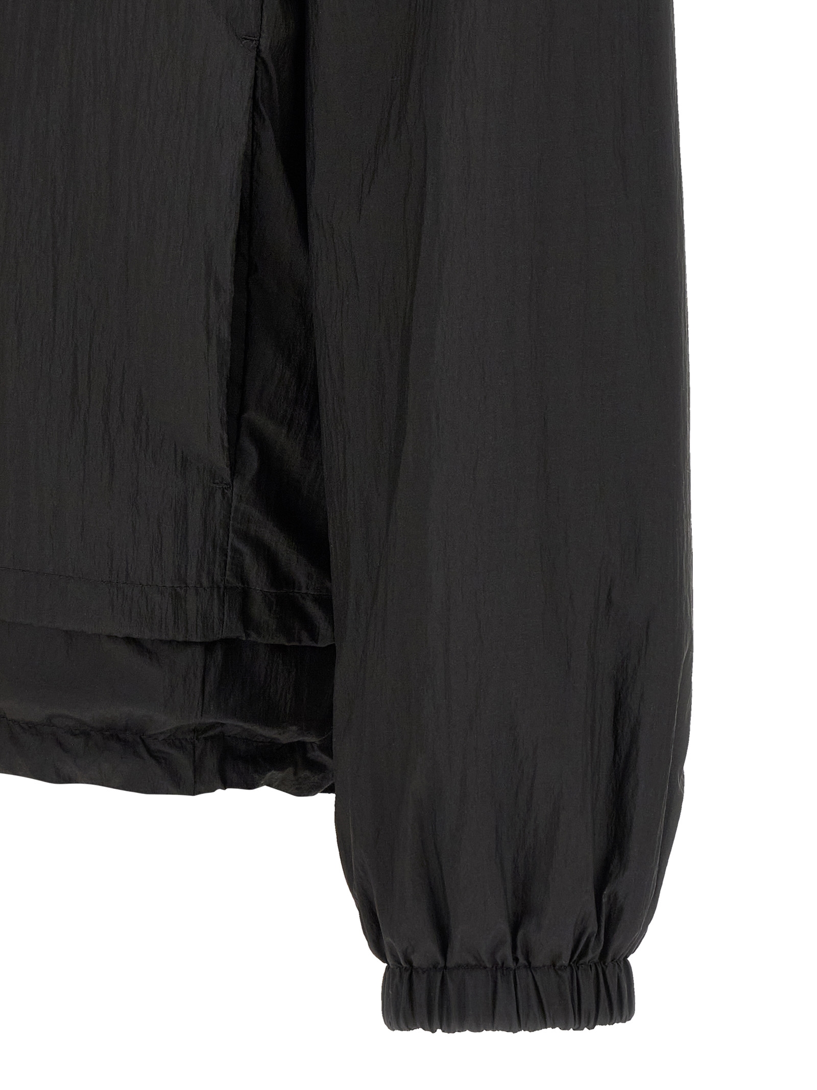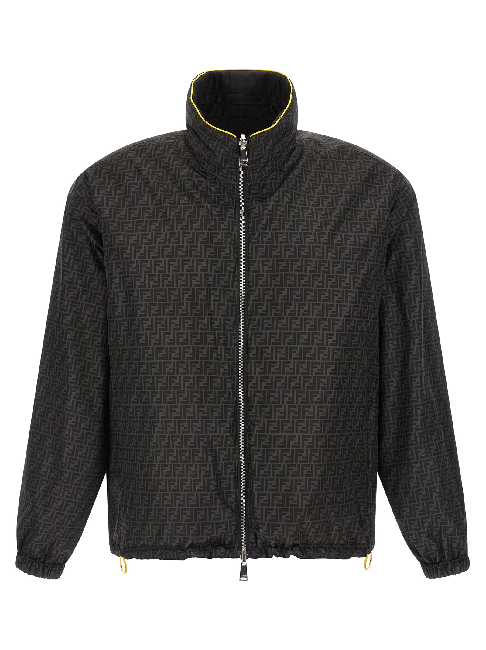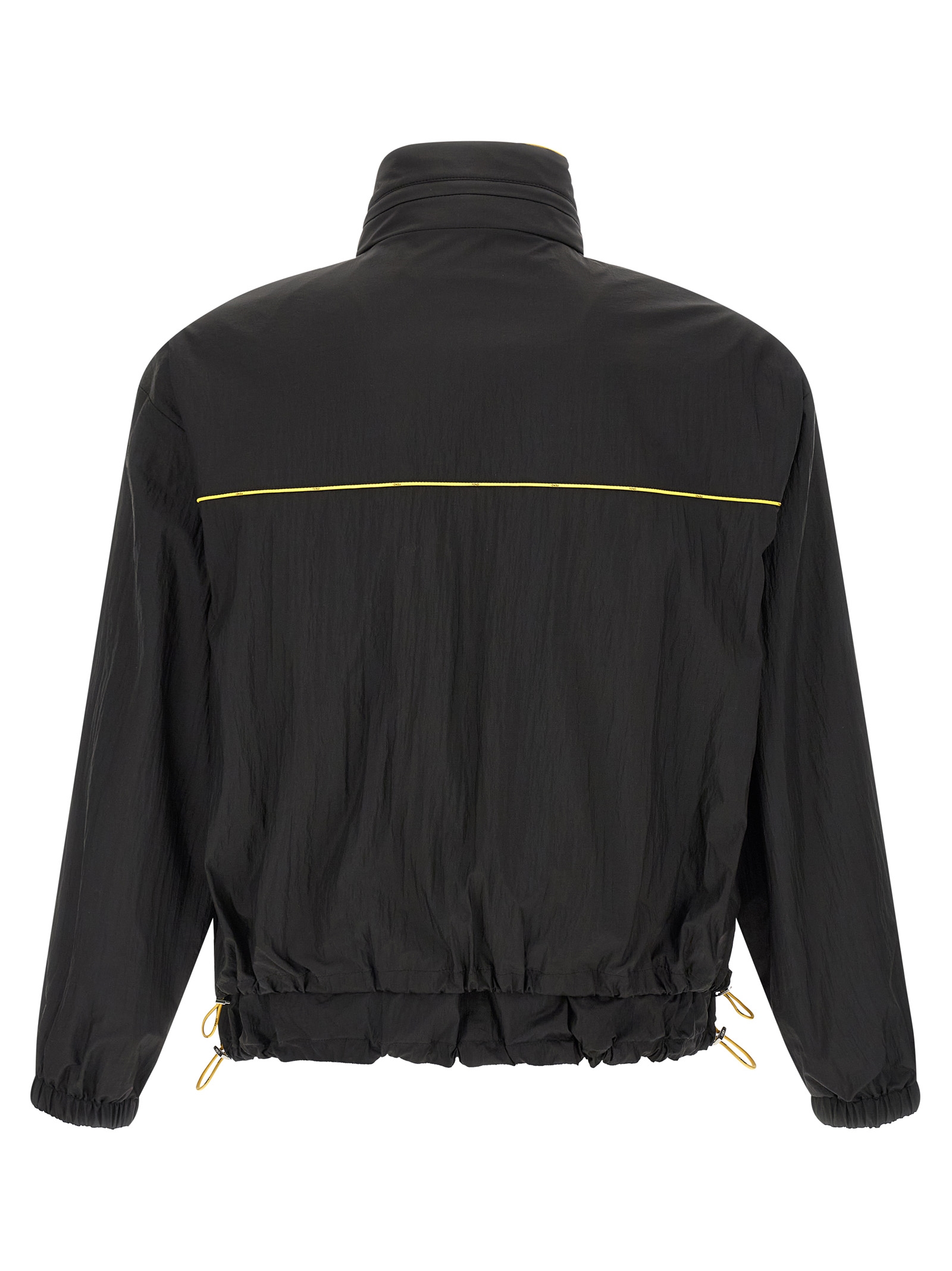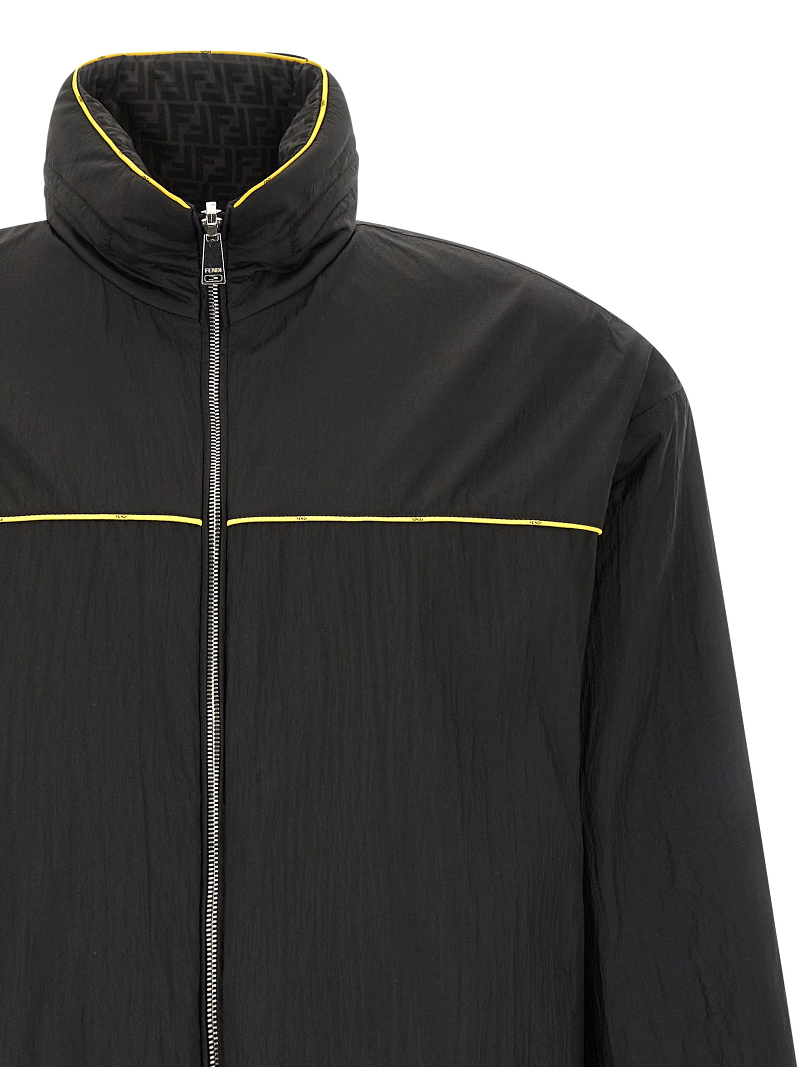Solid color reversible anorak in nylon with contrast piping and FF nylon, stand-up collar with removable hood, front zip closure, pockets, long sleeves with elastic cuffs and dropped shoulder, double drawstring and elastic insert on the hem.