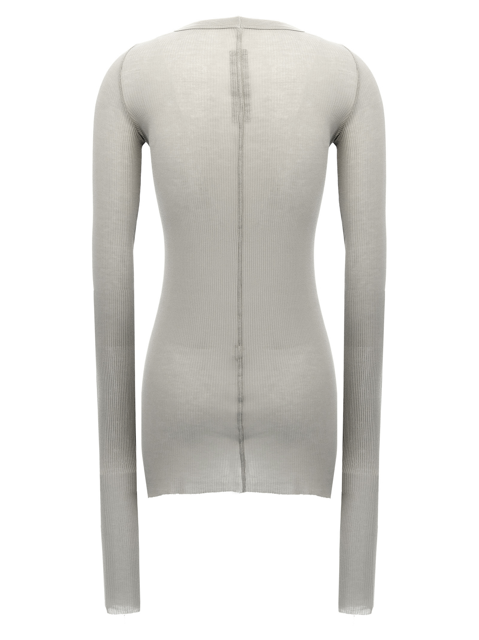 ‘Rib Ls T’ ribbed viscose and silk t-shirt, crew neck, long sleeves, raw cut hem.