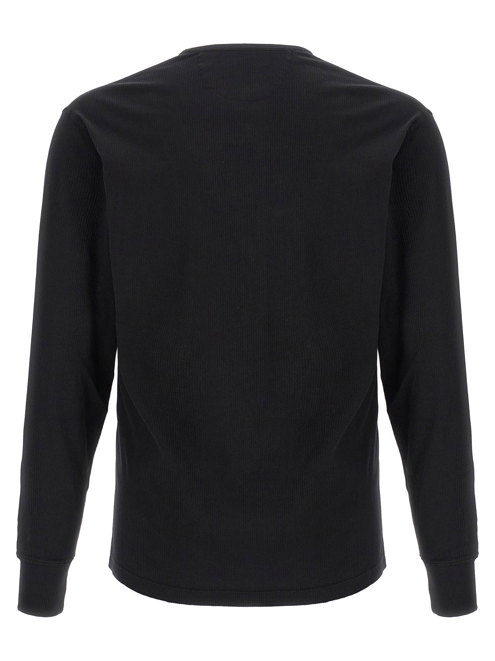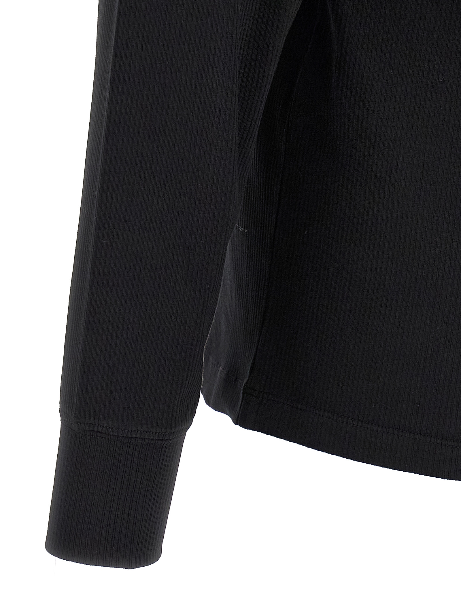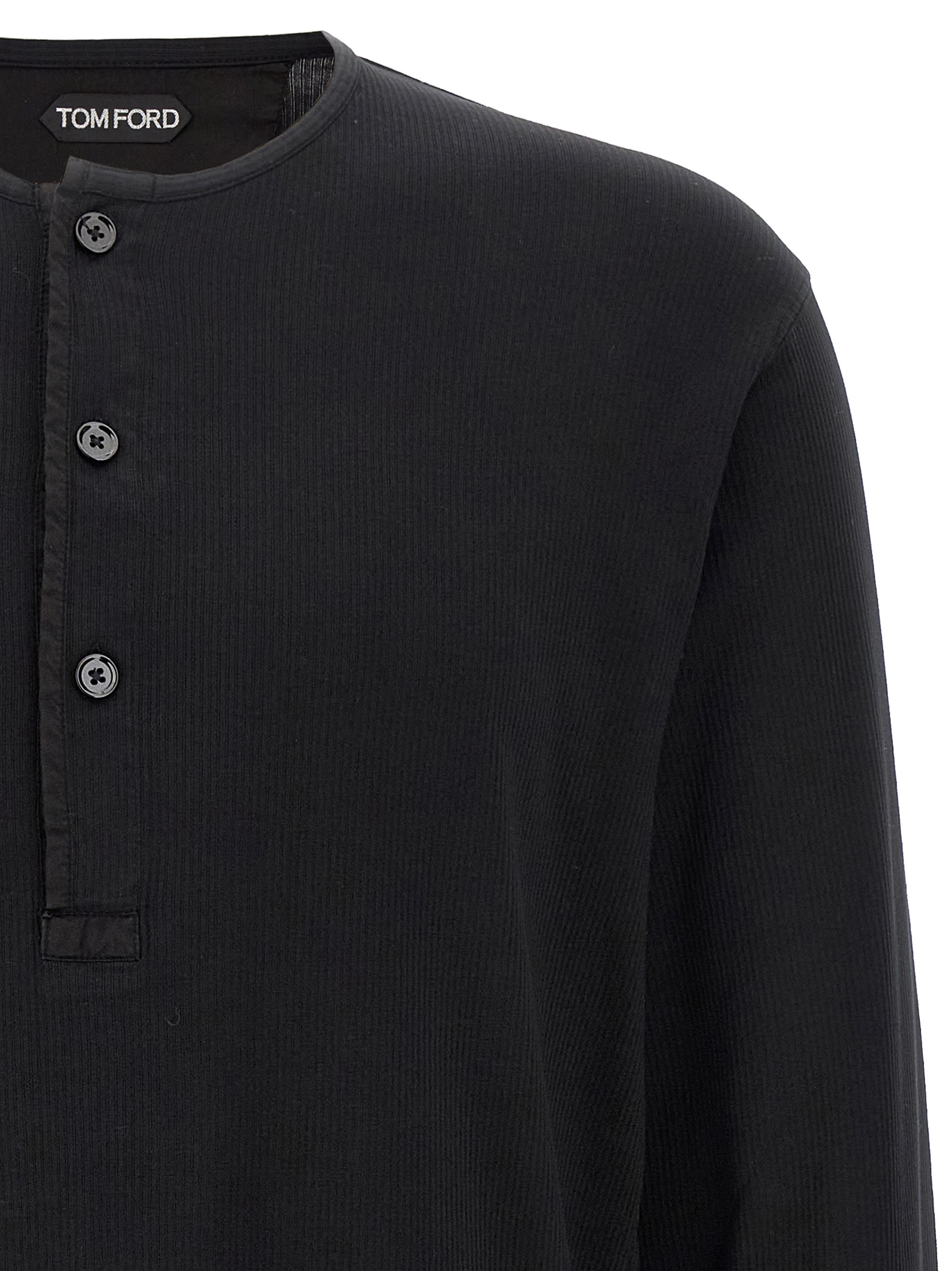 Ribbed stretch cotton T-shirt with crew neck, front button closure, long cuffed sleeves.