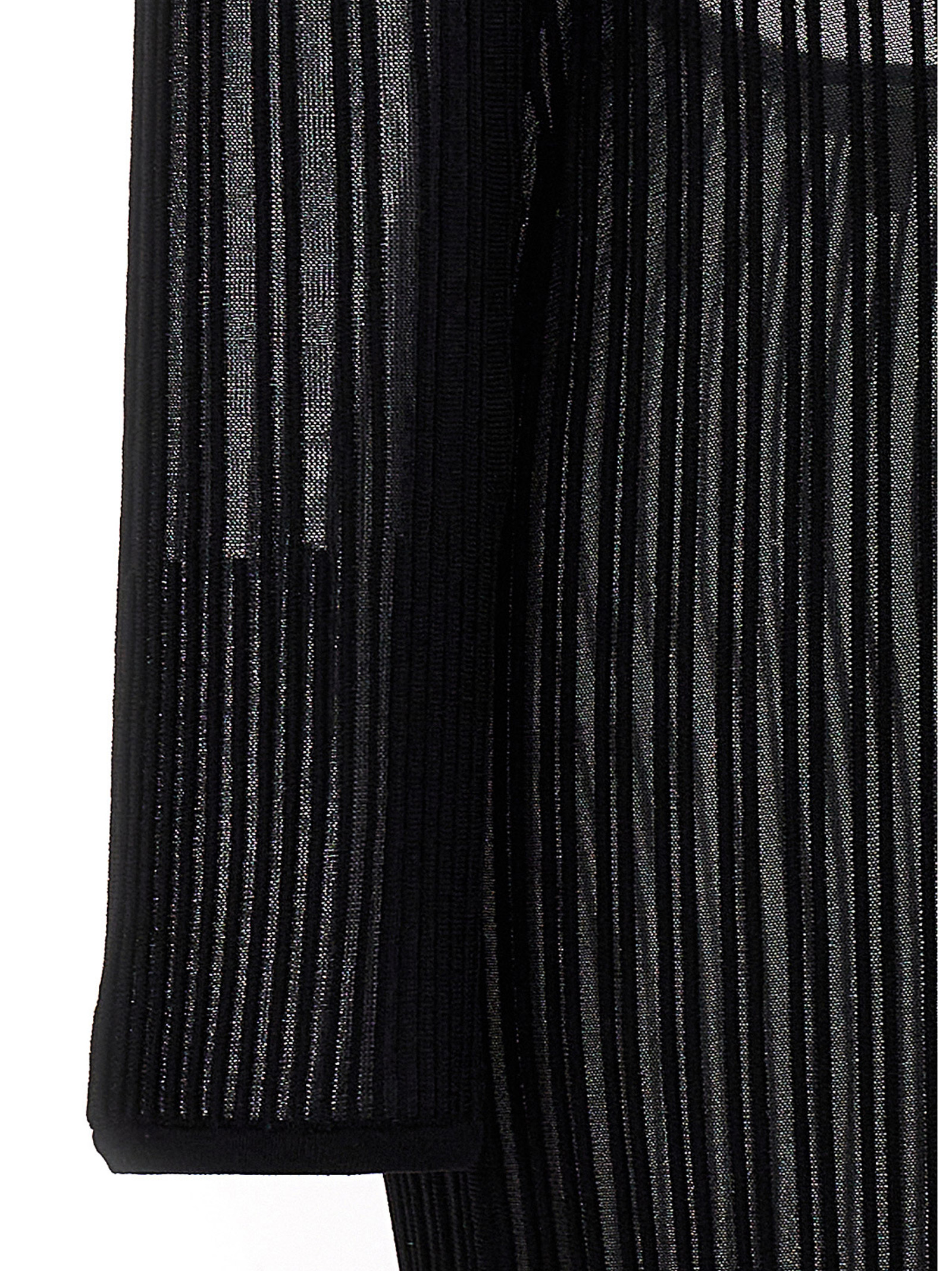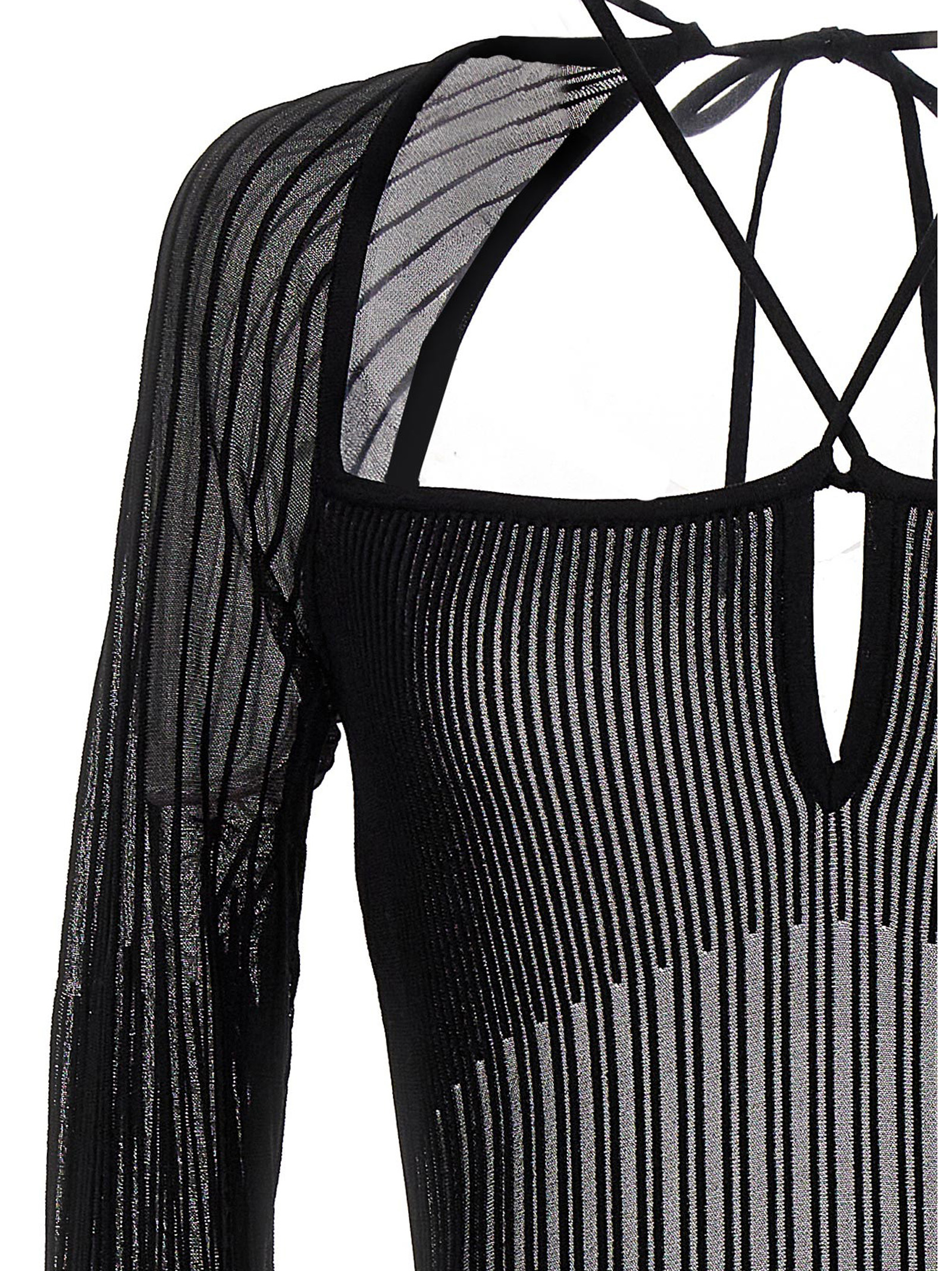 Long ribbed viscose blend dress with long sleeves, lacing at the neck, cut-out details and a bare back.