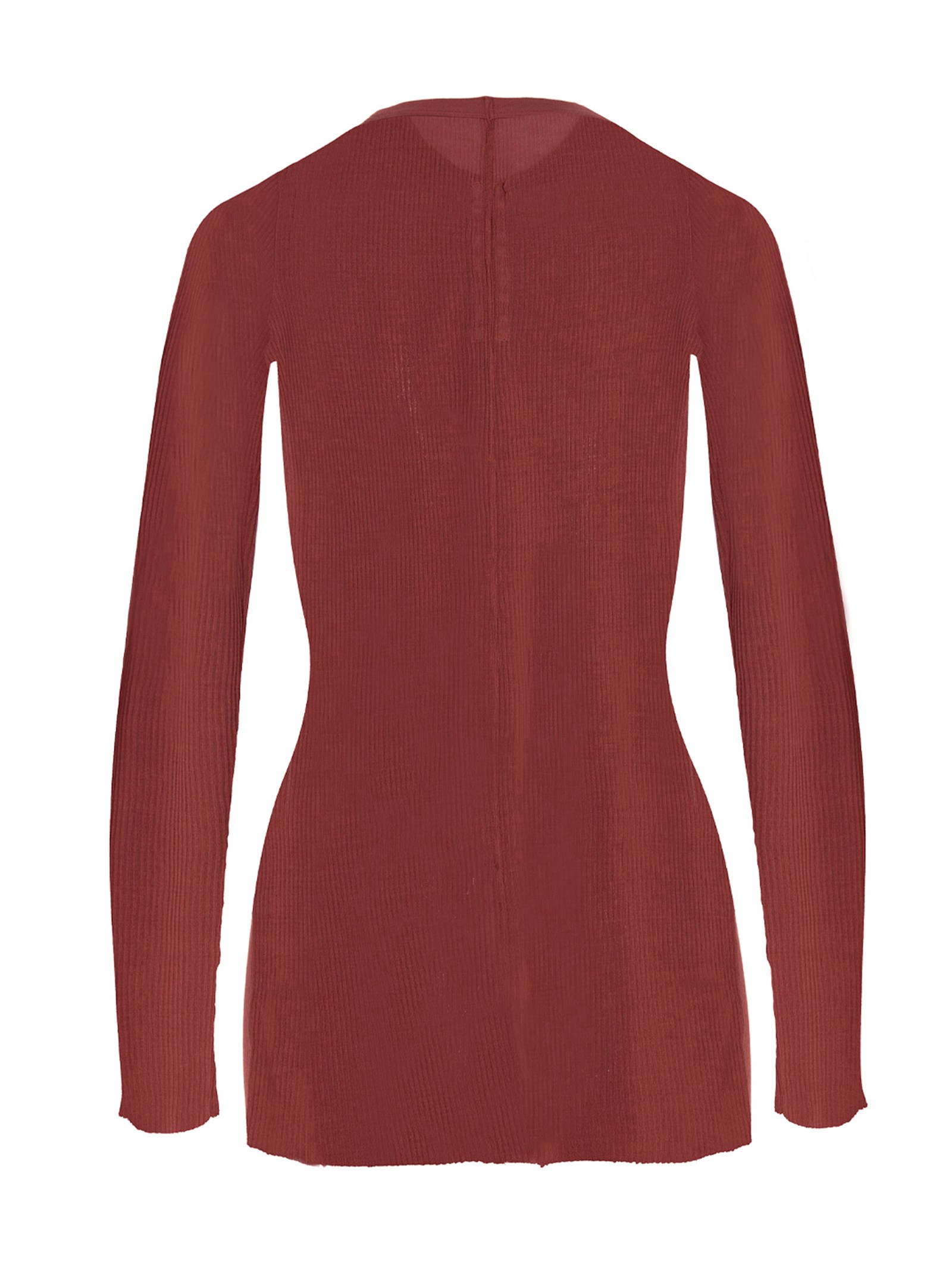 Viscose and silk blend ribbed t-shirt, featuring a raw cut hem, and a slim fit. This product is made with materials that undergo special treatments thanks to which each one is different from another.
