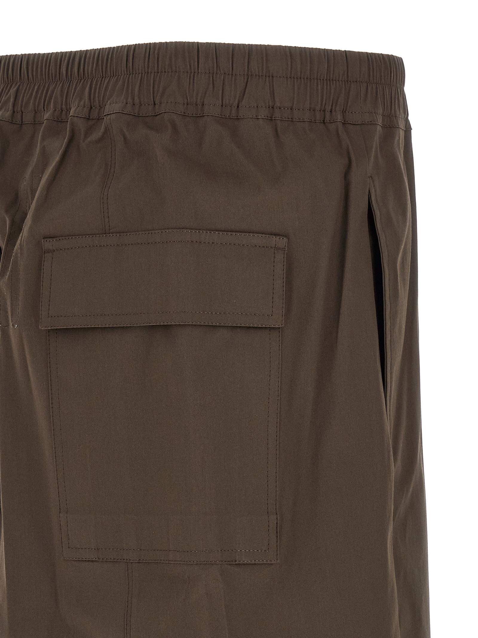 ‘Rick S Pods’ bermuda shorts in cotton poplin with crunchy average coat weight, low crotch, drawstring elastic waistband, button flap, pockets.