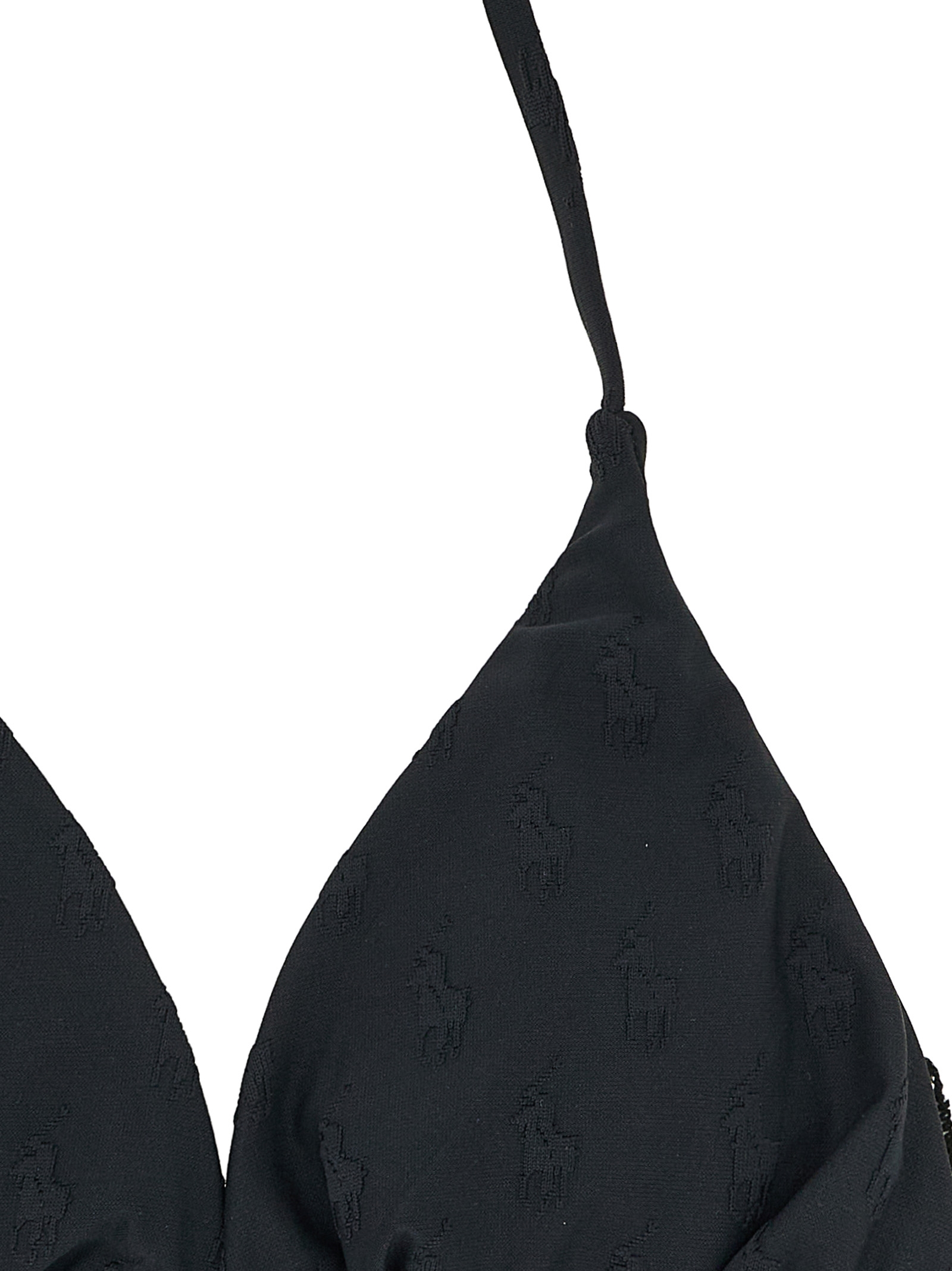 ‘Ricky’ bikini top in technical fabric with all-over tone-on-tone jacquard ‘Pony’, triangle model with tie-up laces.
