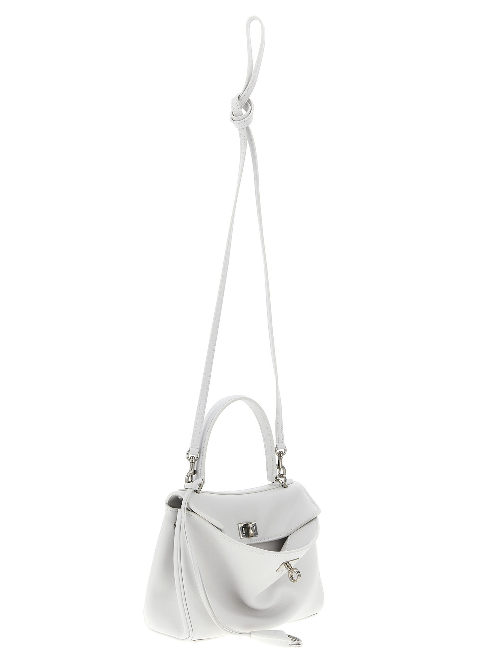 ‘Rodeo’ mini handbag in smooth calf leather, metal details with antiqued finish, fixed handle, removable keyring, flap closure with metal swivel, adjustable and removable shoulder strap.