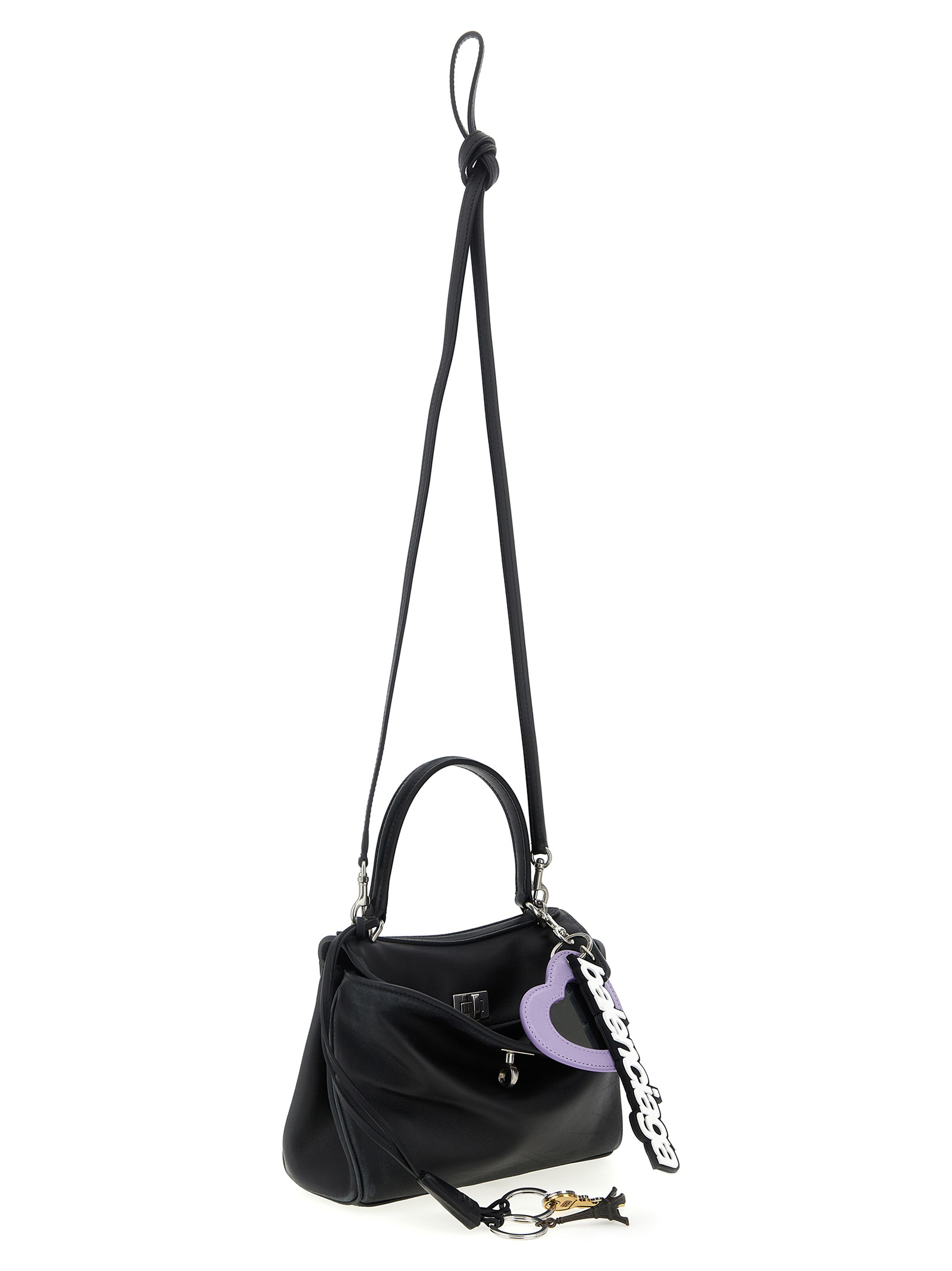‘Rodeo’ mini handbag in smooth used-effect calf leather, metal details with antiqued finish, removable charms, fixed handle, removable keyring, flap closure with metal spin, rigid bottom with metal feet, adjustable and removable shoulder strap.