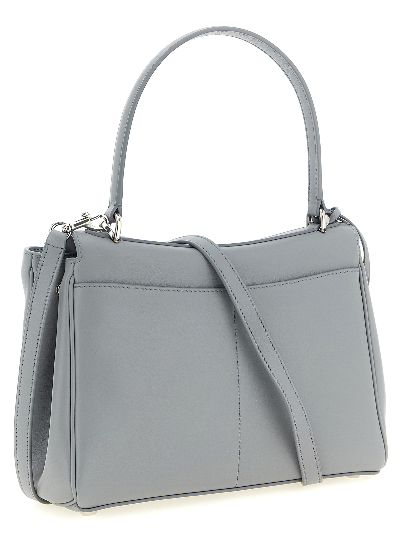 Small ‘Rodeo’ smooth calf leather handbag, fixed handle, antiqued metal details, flap closure with swivel, side gussets with snap buttons, front pocket, rigid base with metal feet, nappa lining, removable shoulder strap, and removable keyring keyring.