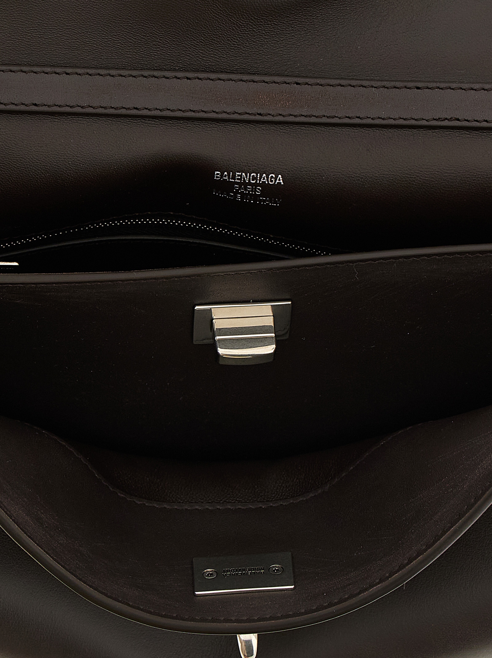 Small ‘Rodeo’ waxed calf leather and smooth calf leather handbag, fixed handle, swivel closure, side gussets with snap buttons, rigid base with metal feet, lamb nappa lining, adjustable and removable shoulder strap, removable keyring.