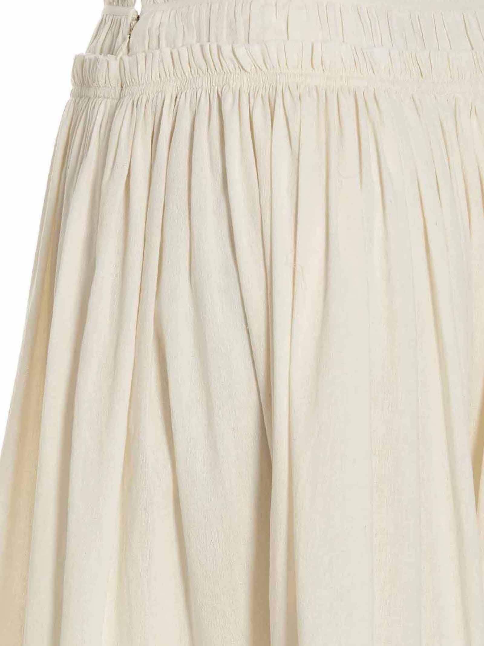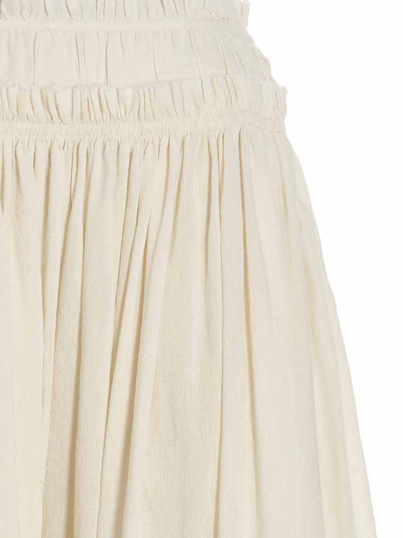 Rouched Waist’ skirt in cotton and linen, with ruffle at the waist and a side zip closure.