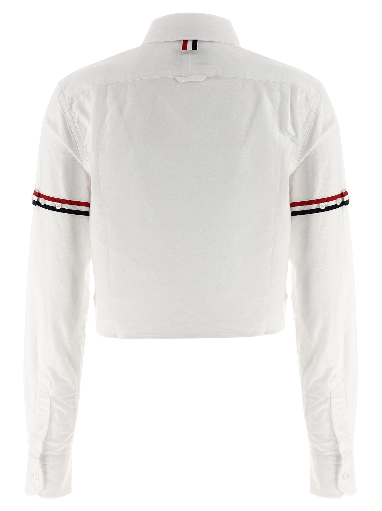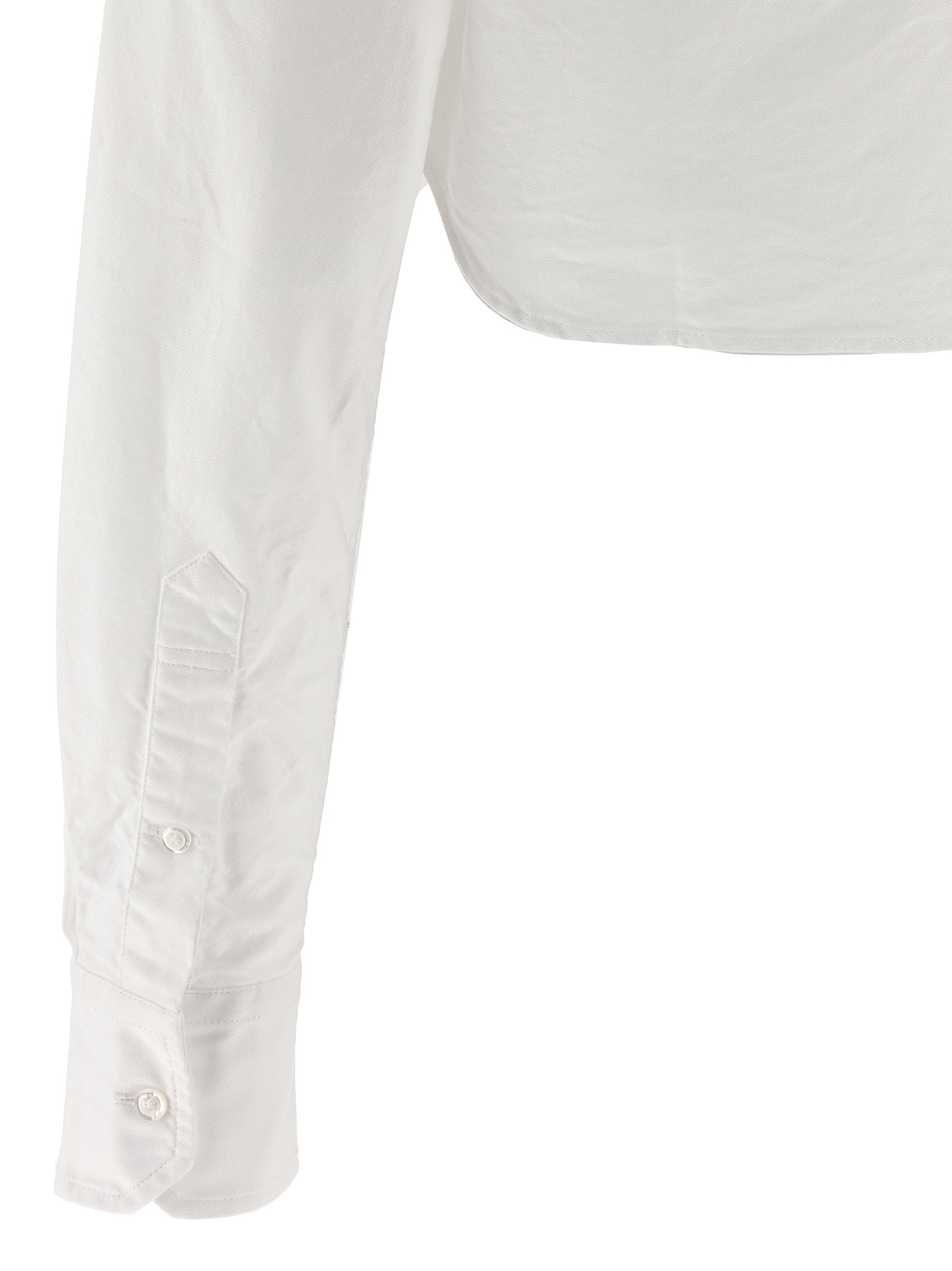 Cropped cotton shirt with RWB detail on the sleeves, front pocket, button closure, and long cuffed sleeves.