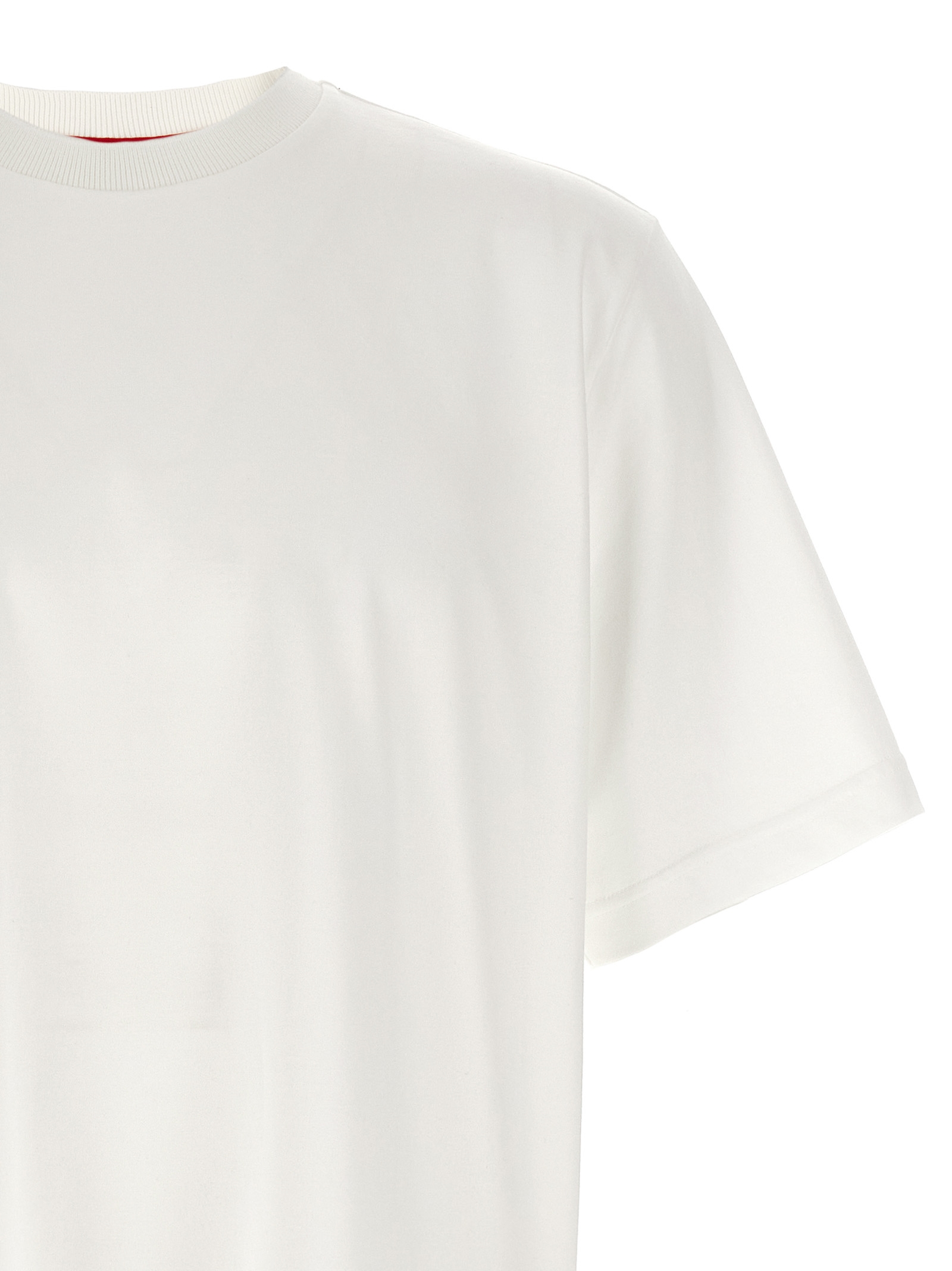 Medium-weight cotton jersey t-shirt, front logo patch, crew neck, tricolor ‘RWB Knit Trim’ ribbon detail on the back, side slits, short sleeves, and asymmetrical hem.