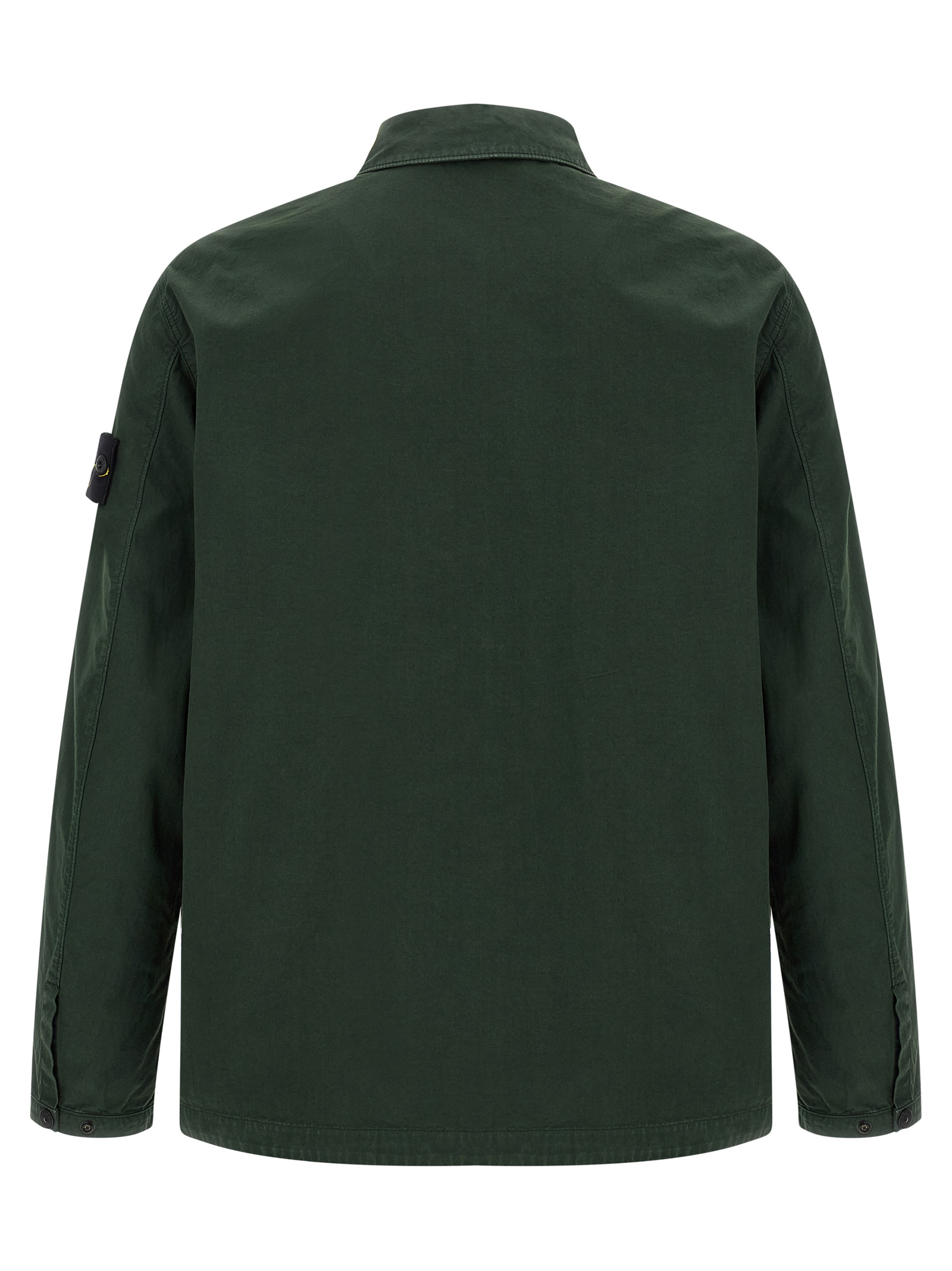 ‘RWS’ cotton canvas overshirt with front zip closure, breast pocket, long cuffed sleeves and logo badge.
