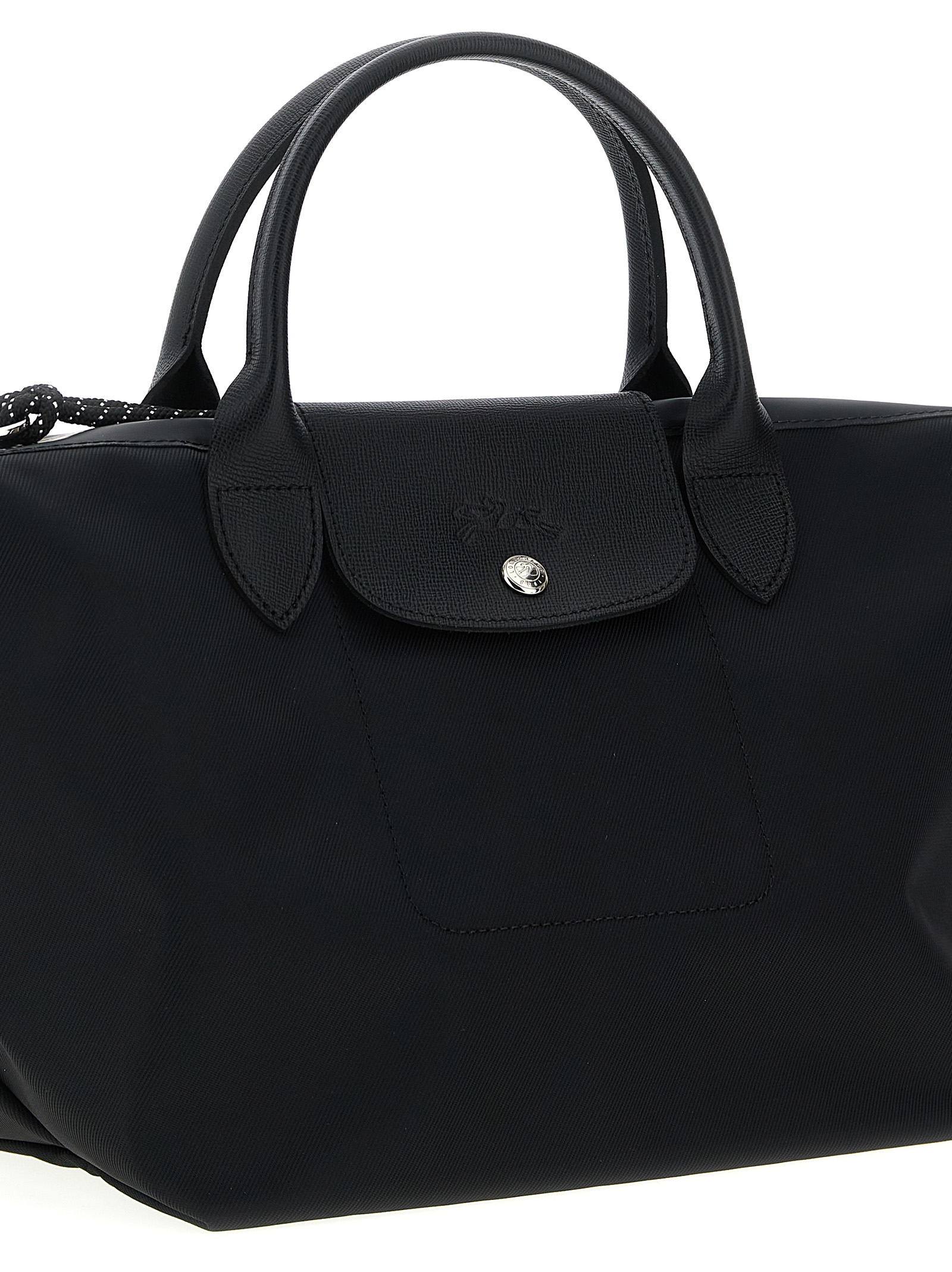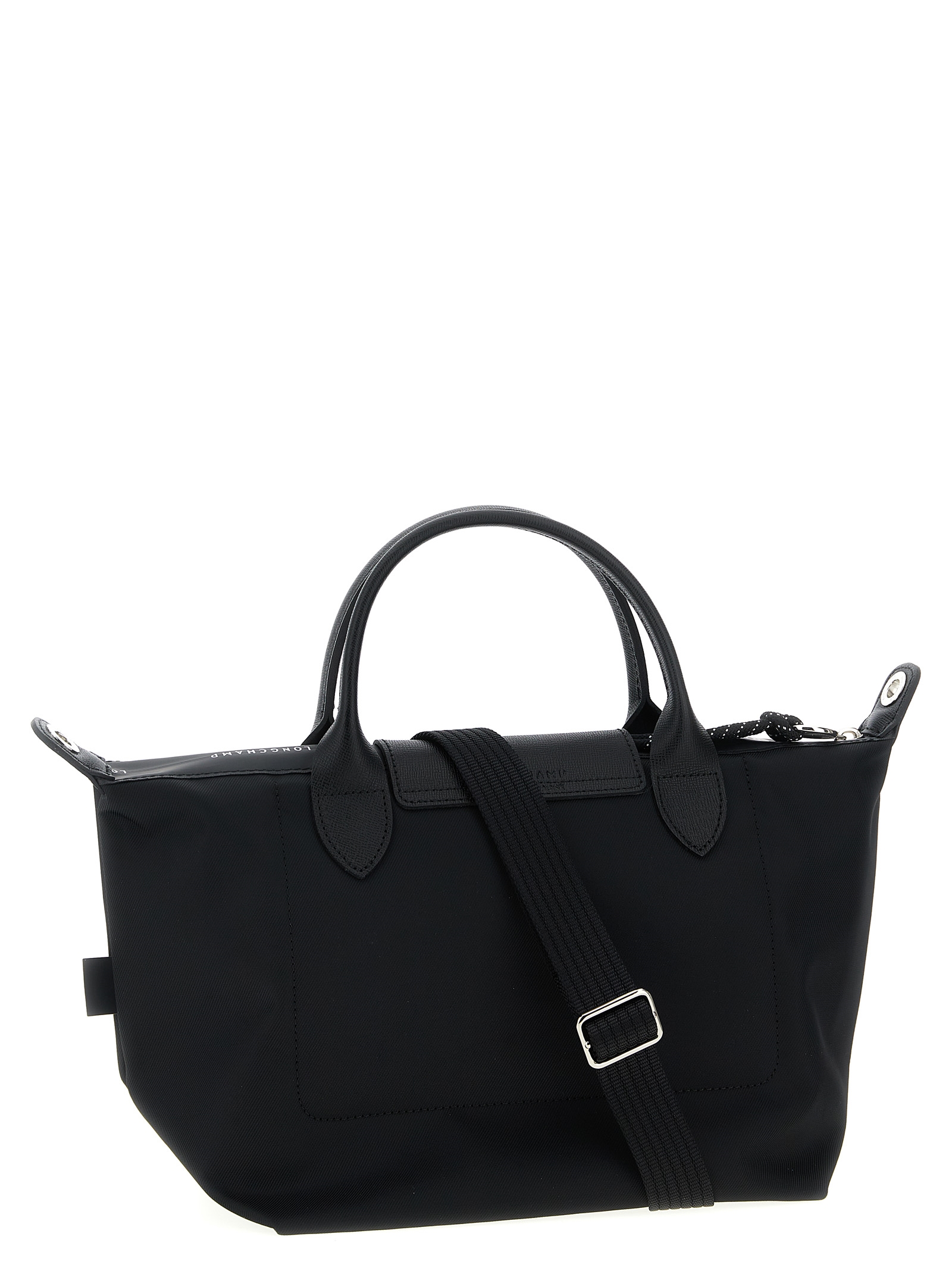 ‘S Le Pliage Energy’ nylon canvas handbag, top zip closure, double fixed handle in Saffiano leather, flap in Saffiano leather with button closure and embossed logo, adjustable and removable tape shoulder strap.