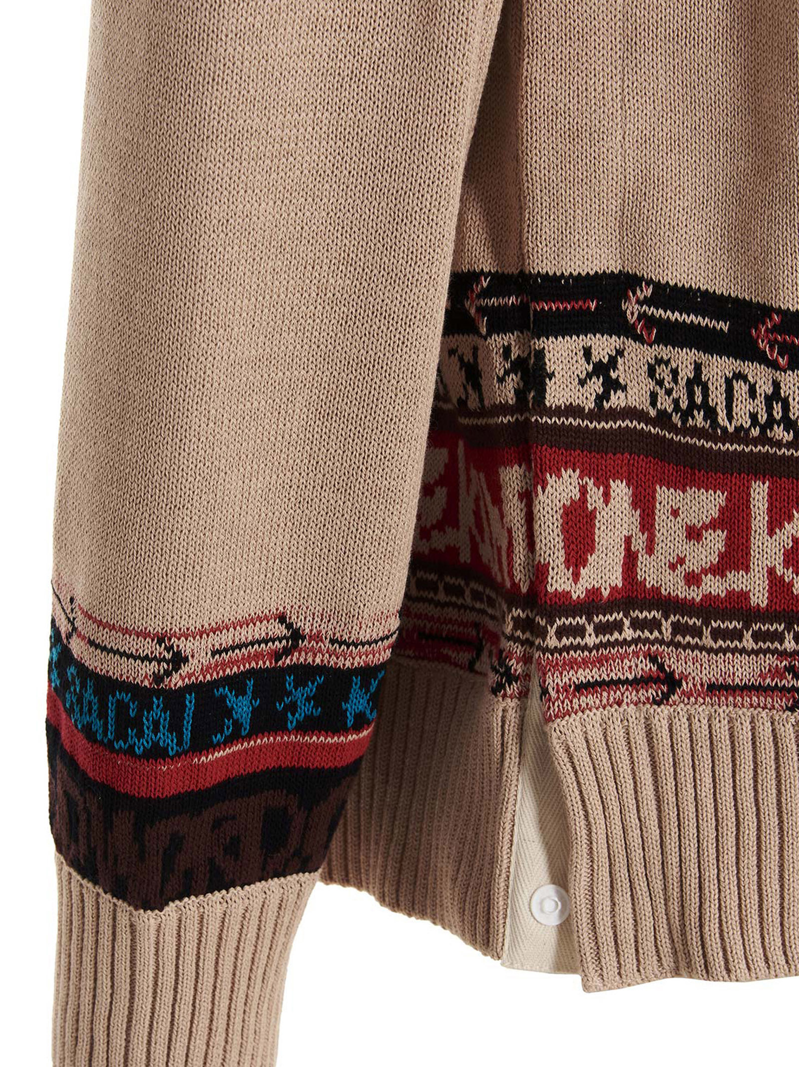 Sacai x Eric Haze cotton shirt with an all-over jacquard pattern, a crew neck, long cuffed sleeves and splits with buttons at the sides.