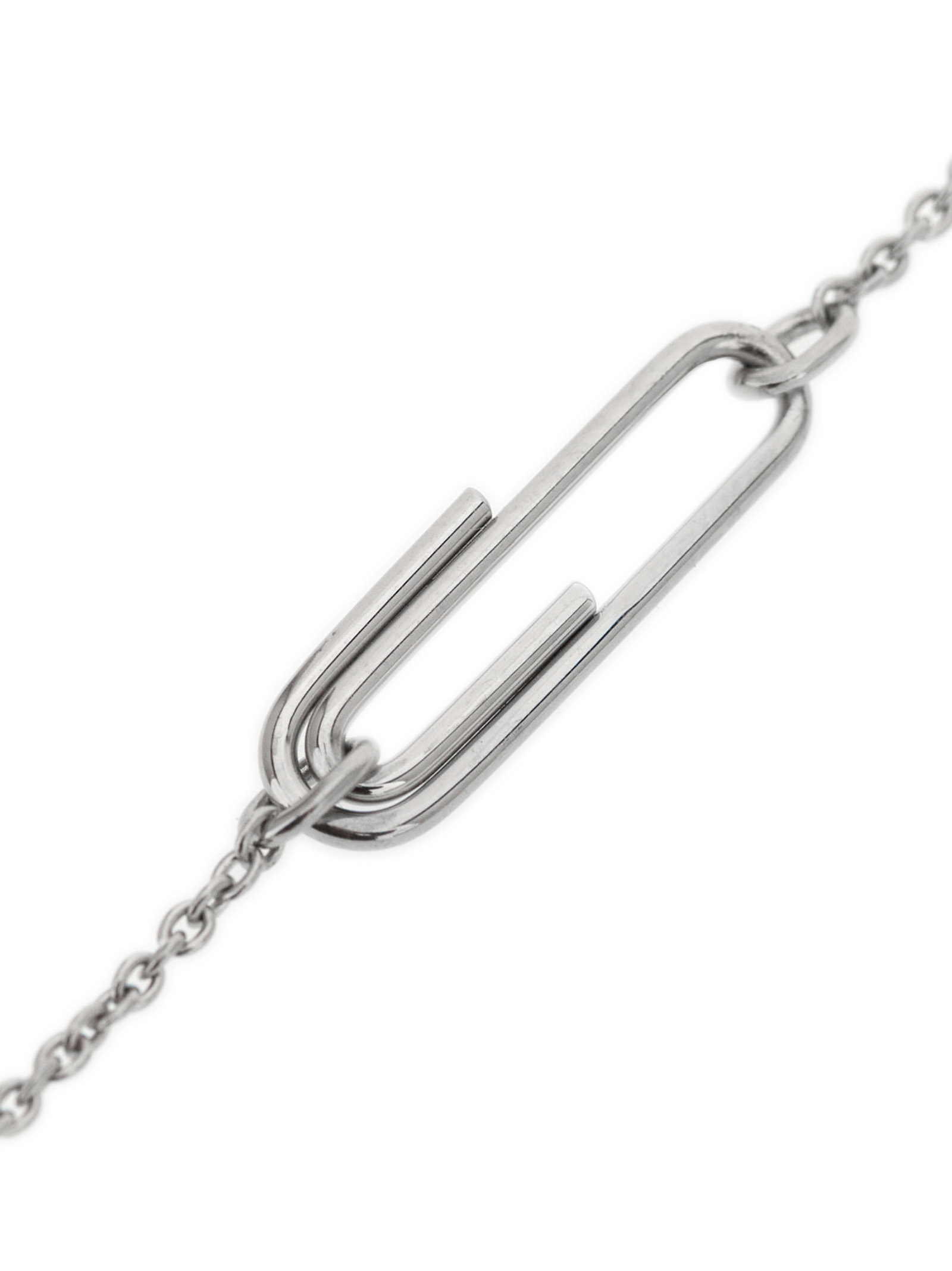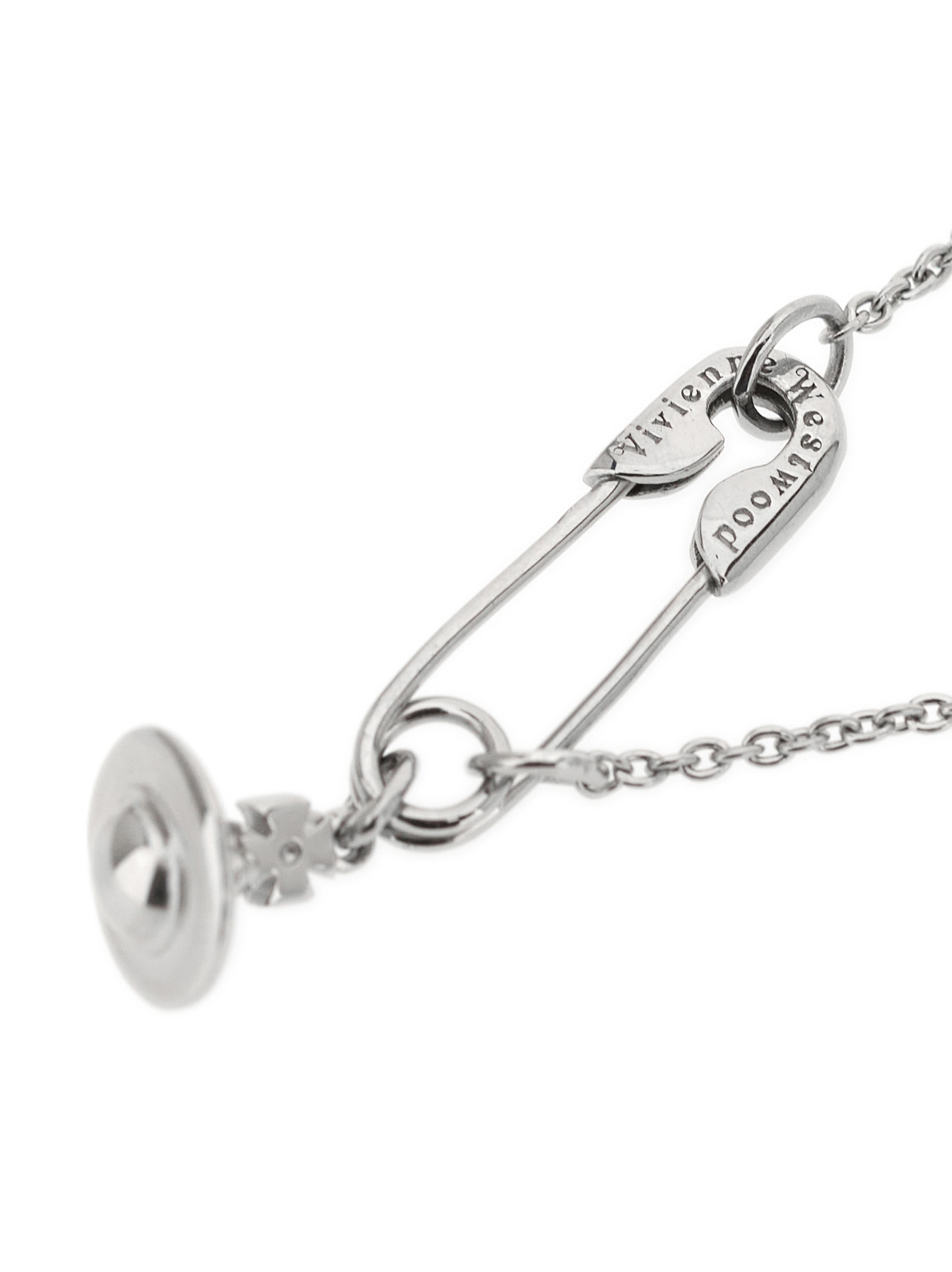 Safety Pin’ necklace in silver-plated metal with pendant and Orbit detail, and snap hook closure.